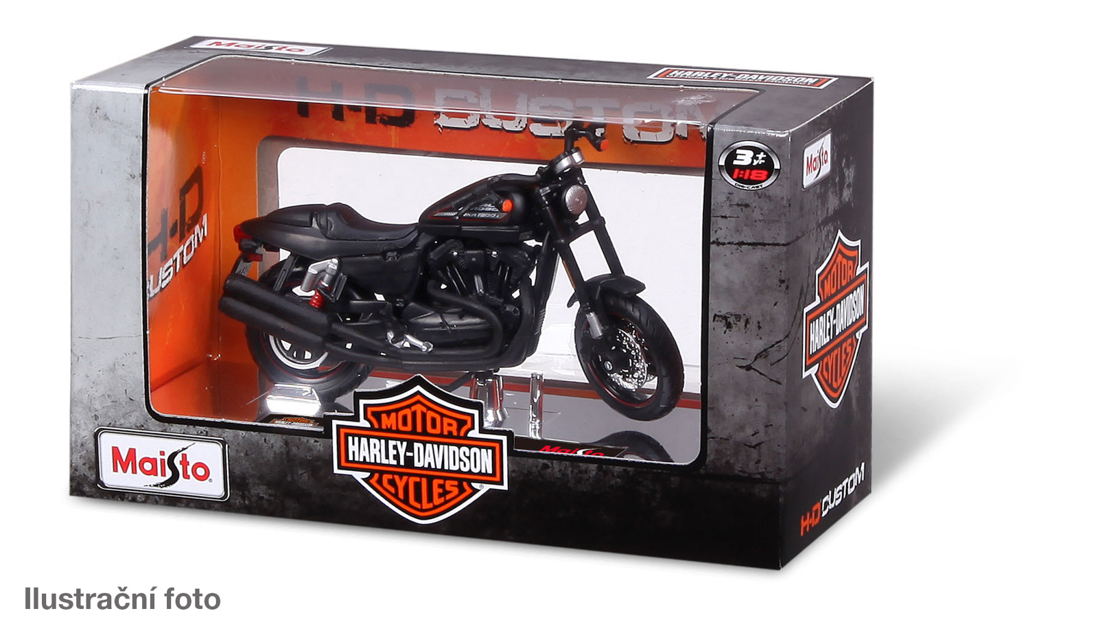 Harley-Davidson Motorcycles 1:18. Kovové modely motocyklů Harley Davidson v modelovém měřítku 1:18 mají velmi dokonalé, detailní provedení jednotlivých částí a kvalitní barevné provedení. Kovový model s plastovými doplňky. Motocykly mají řiditelnou vidlici, pohyblivý boční stojan a odpruženou zadní nápravu. Jsou usazeny na atraktivním podstavci. Baleno v krabičce. Assort je náhodný mix modelů. Výběr nelze ovlivnit. Varianty k dispozici: 2022 Sportster® Iron 883™, 2022 Road King® Special, 1999 FLSTS Softsail® Springer™, 2006 Dyna® Street Bob®, 2014 Sportster® Iron 883™. Nevhodné pro děti do 3 let. Rozměry balení: 10,2 x 17,8 x 7 cm. Věk: 3 +