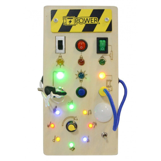 Co se stane, když zasunete zástrčku do zásuvky? Nebo když otočíte klíčkem v zámku či v zapalování? A co musíte udělat, aby se rozsvítilo světlo? Na všechny otázky odpoví tato dřevěná deska s aktivitami, která nabízí spoustu možností ke zkoumání příčiny a následku. Je zábavná a vzdělávací zároveň a podporuje zvídavost a motorické dovednosti malých dětí. Deska je vybavena řadou interaktivních prvků, jako jsou spínače, LED světýlka a další. Světla se rozsvěcují najednou nebo postupně v závislosti na vypínači a aktivují se např. pomocí přiloženého klíče, který je potřeba zasunout do zámku, a také kabelem se zástrčkou, který se zapojí do zásuvky na desce, a jsou doplněna zvuky. Tato hračka je navržena tak, aby podporovala přirozený vývoj dítěte a umožňovala objevovat okolní svět pomocí vlastního zájmu a aktivity. Je ideálním doplňkem pro trénink široké škály každodenních dovedností.Hlavní vlastnosti:•ukáže dětem, jak funguje příčina a následek•rozvíjí jemnou motoriku a koordinaci ruka-oko•podněcuje kreativní myšlení a představivost•senzorická stimulace a edukace prostřednictvím hry•vyžaduje 2x AAA baterie - nejsou součástí balení