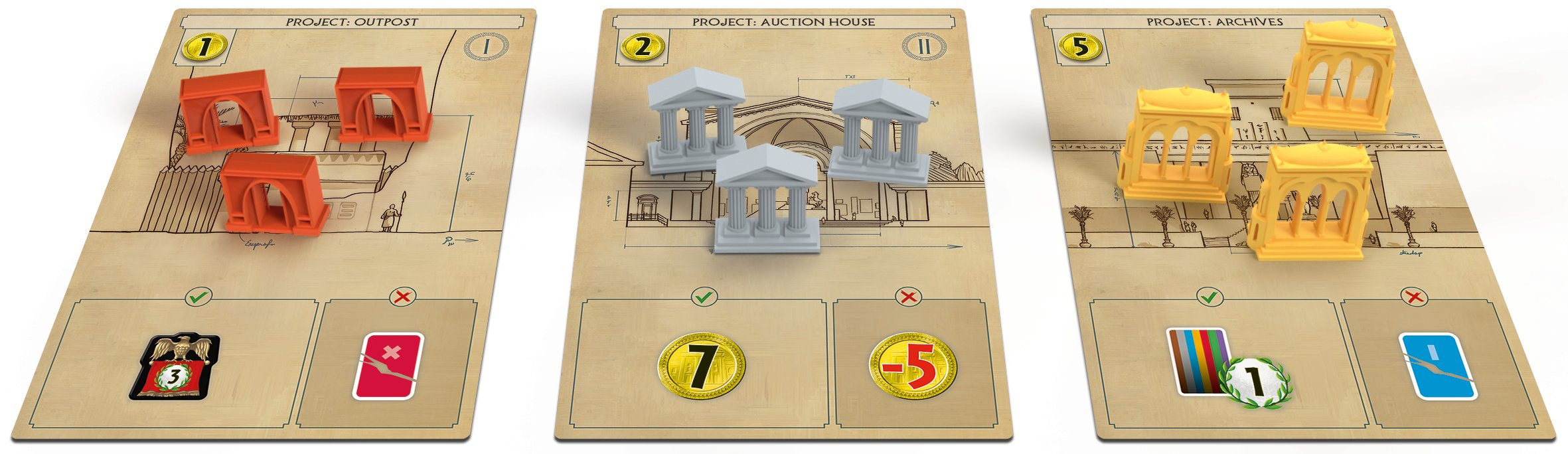 Obsah: 2 desky divů 15 karet staveb 24 miniatur účasti 15 žetonů dluhů 3 mince 12 žetonů vojenských konfliktů 1 bodovací deska 3 listy popisů nových efektů česká a slovenská pravidla