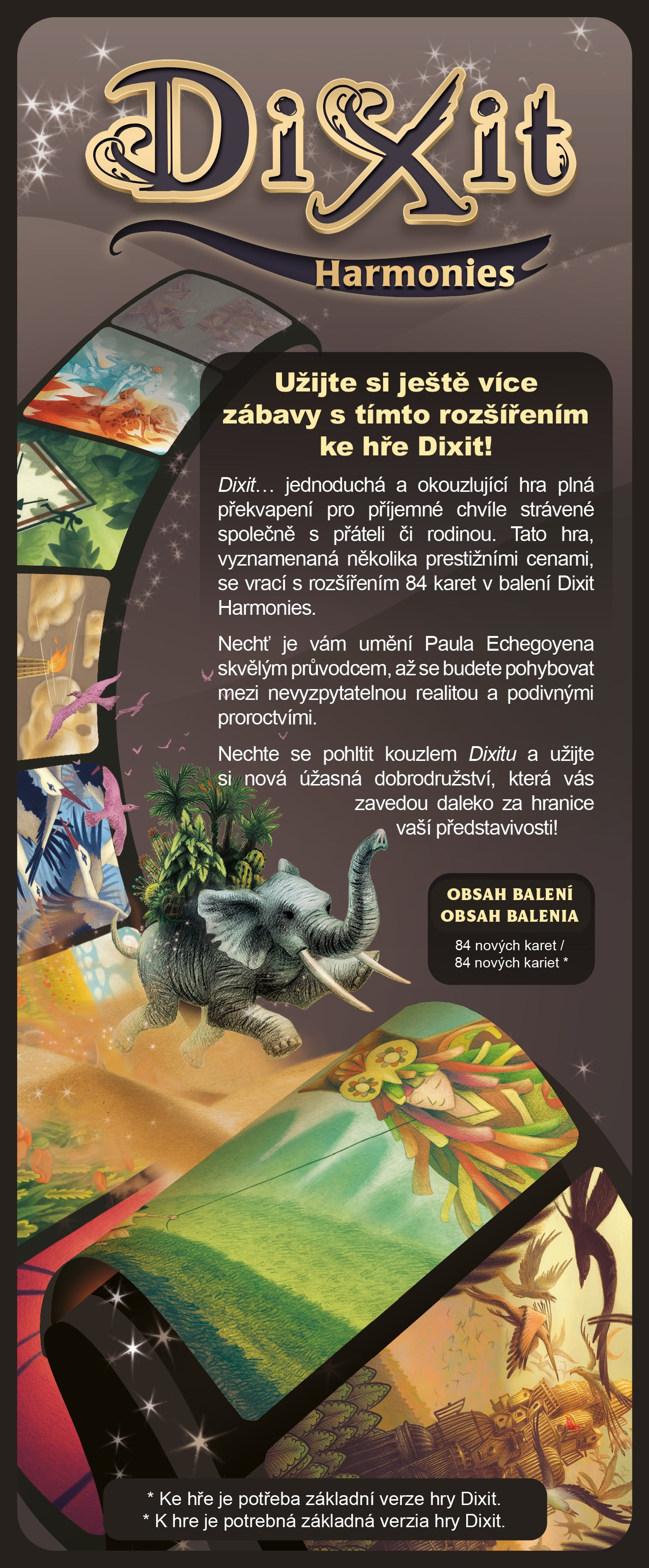 Toto rozšíření Dixit přináší další nové a neokoukané obrázkové karty, které můžete zkombinovat se základní hrou. Pokud už znáte původní karty nazpaměť, zajisté vám příjde vhod celkem 84 zbrusu nových obrázkových karet, které vnesou do vašeho hraní nový vítr a poskytnou další hodiny a hodiny zábavy s touto skvělou hrou.