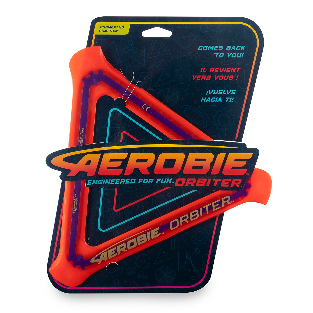 S bumerangem Aerobie Orbiter™ si můžete házet sami se sebou. Uletí okruh cca 28 m a vrátí se zpět. Má unikátní trojúhelníkový tvar s měkkými a pružnými okraji, takže se lehce a příjemně chytá. Díky jeho zářivým barvám je bumerang Aerobie Orbiter dobře viditelný během celého letu. Instrukce pro házení bumerangu jsou na obalu i na samotném bumerangu. Nezoufejte, pokud se hned napoprvé bumerang nevrátí a nezdávejte to! Bumerang Aerobie Orbiter se skutečně vrací a je to jen otázkou cviku, popř. větru a vyladění bumerangu. Otevřený střed umožňuje každému hráči přizpůsobit si styl házení a chytání – chytat rukou za hranu nebo používat střed k chytání rukou či nohou. Vytvořte si své osobité styly házení s létajícími disky Aerobie. Aerobie Orbiter Bumerang měří na každé straně 29 cm. Je vhodný zejména pro praváky. Bumerang neplave na vodní hladině. Jazykové mutace: CZ, SK, EN, ESP, DE, PL, IT. K dispozici v různých neonových barvách. Assort je náhodný mix modelů. Výběr nelze ovlivnit. Rozměry