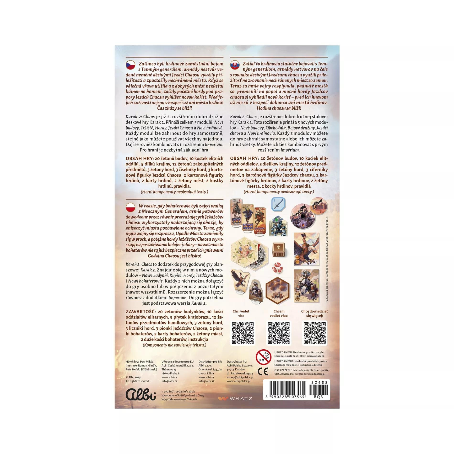 Ke hraní rozšíření Chaos je potřeba vlastnit základní hru Karak 2.
