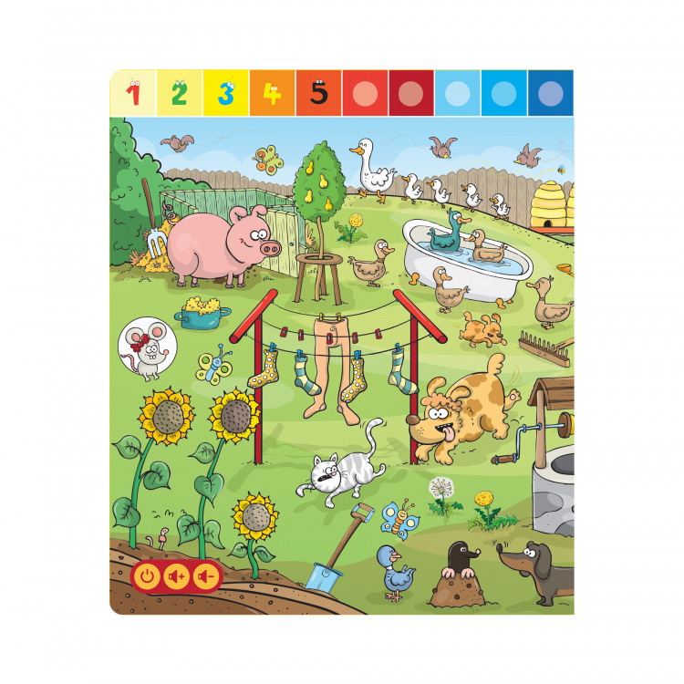 Knížka děti zavede je na dvorek, do hračkářství, k vodě nebo třeba do korun stromů. A proč zrovna tam? Budete se divit, ale všude je toho hodně k počítání. A o tom děti přesvědčí také průvodci, myška Matylda a myšák Ludva. Děti si mohou vyzkoušet i svůj postřeh. Najdou malé průvodce na karnevalu, v moři, na louce nebo v mumraji na pouti? Pojďme to zjistit.