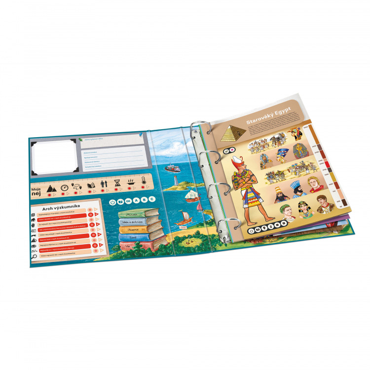 Pořadač obsahuje ozvučený deník mladého vědce a plochu na lepení milníkových samolepek.