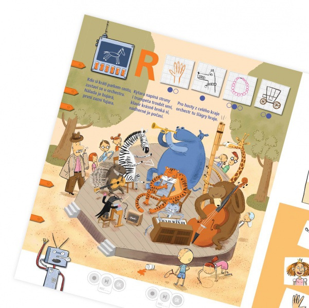 Součástí knihy jsou i kouzelné samolepky, s nimiž si děti mohou svoji výslovnost nahrát a poslechnout.