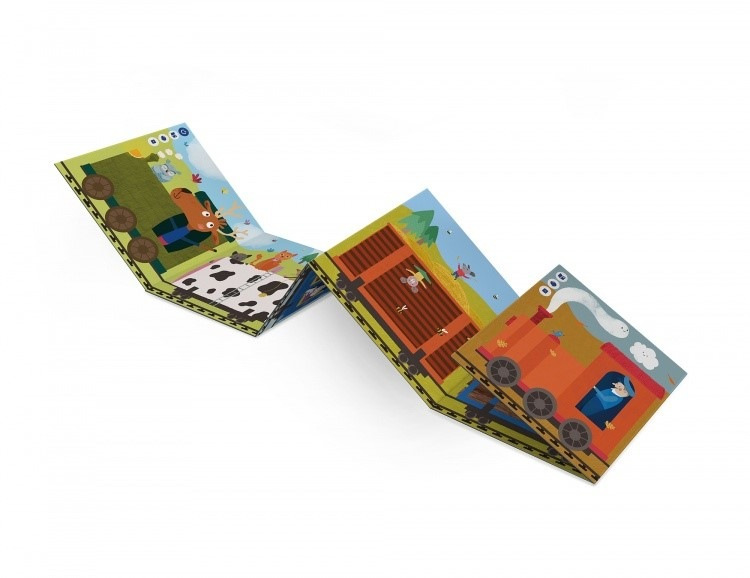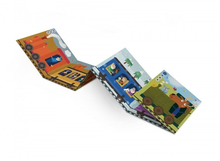 Kniha Vlakem celým rokem je prvním titulem ve formátu rozkládacího harmonikového leporela a je tak vhodná i pro ty nejmenší čtenáře. Jedna strana leporela je věnovaná nákladnímu vlaku a zvířátkům, druhá strana pak osobnímu vlaku plnému cestujících.
