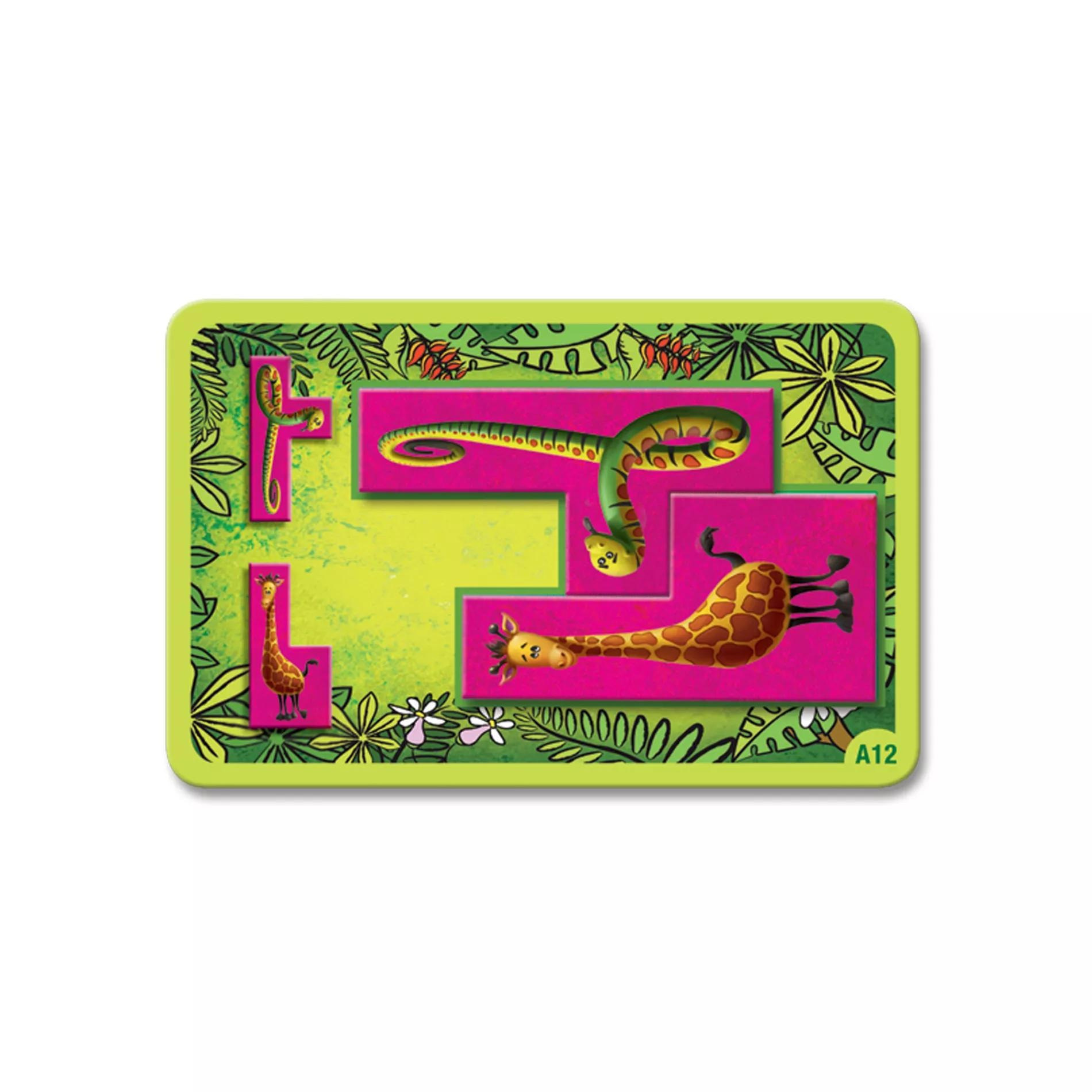 Hra Ubongo Junior Mini obsahuje: 32 herních karet s 64 zadáními, 28 dílků se zvířaty, pravidla.