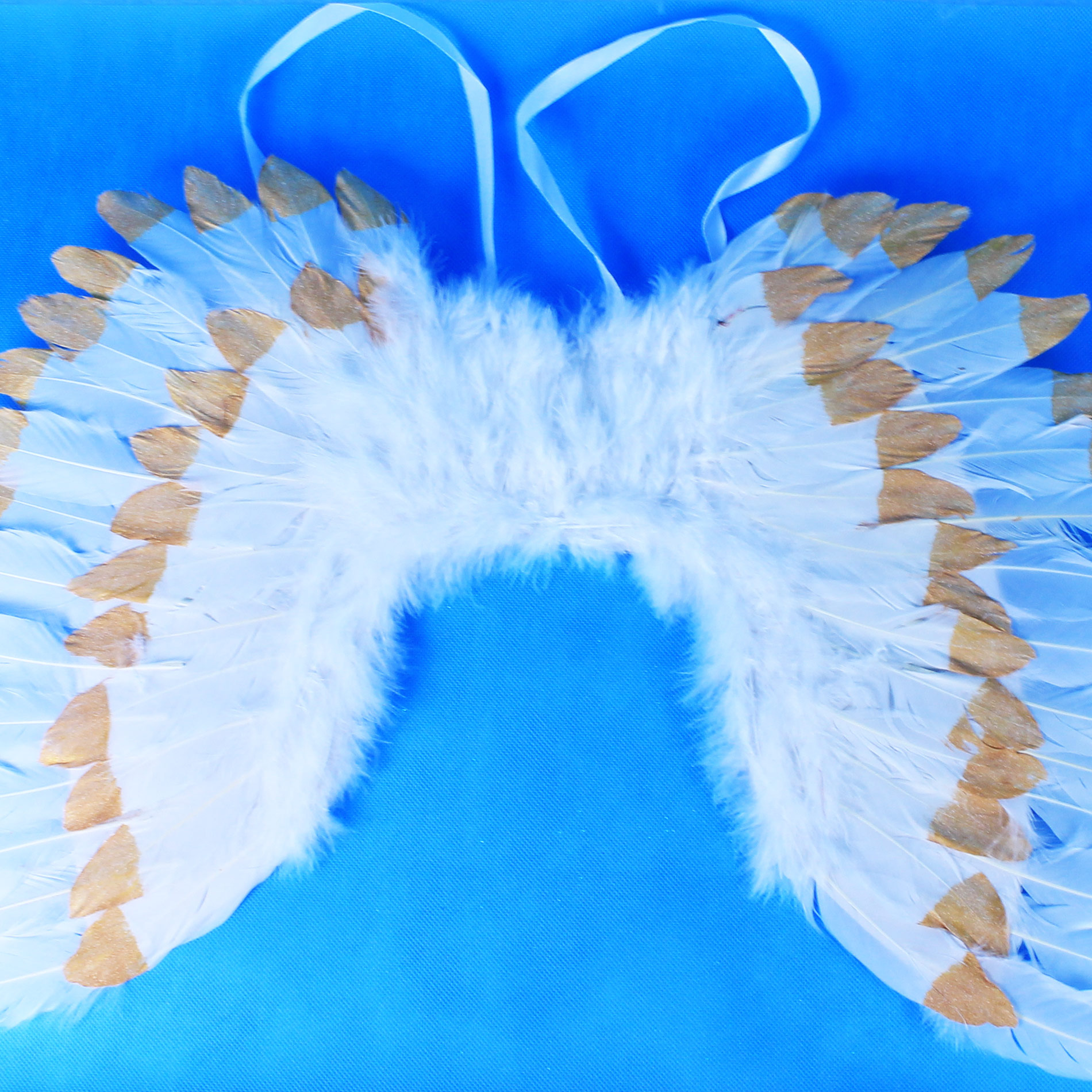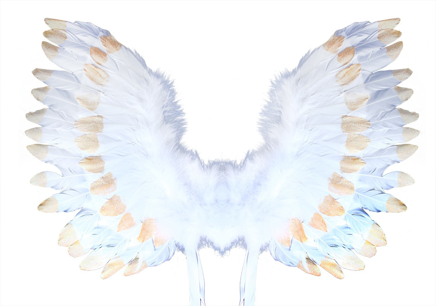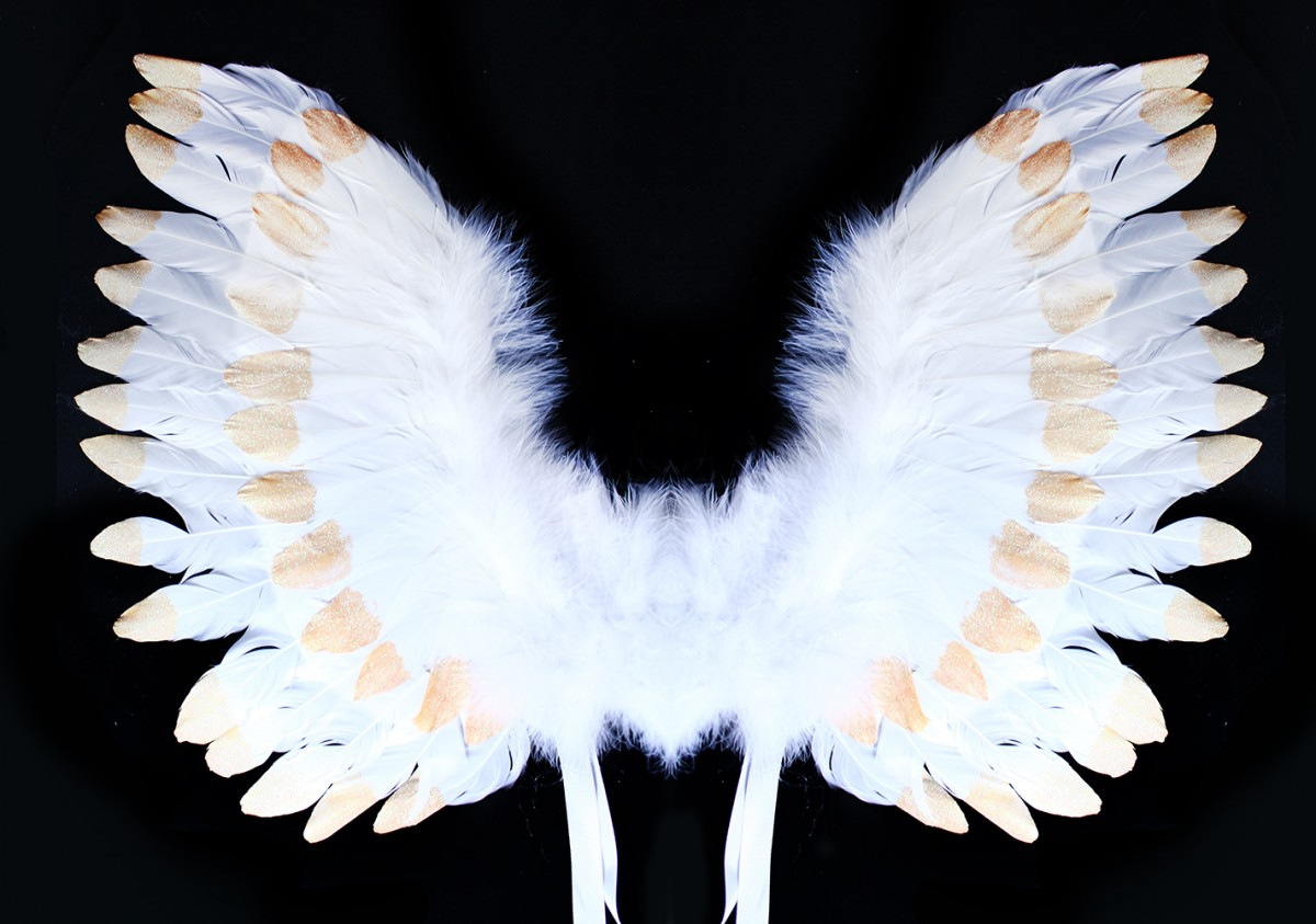 Překrásná křídla pro opravdové anděly se sněhově bílým peřím zdobeným zlatými třpytkami! Tyto nebesk