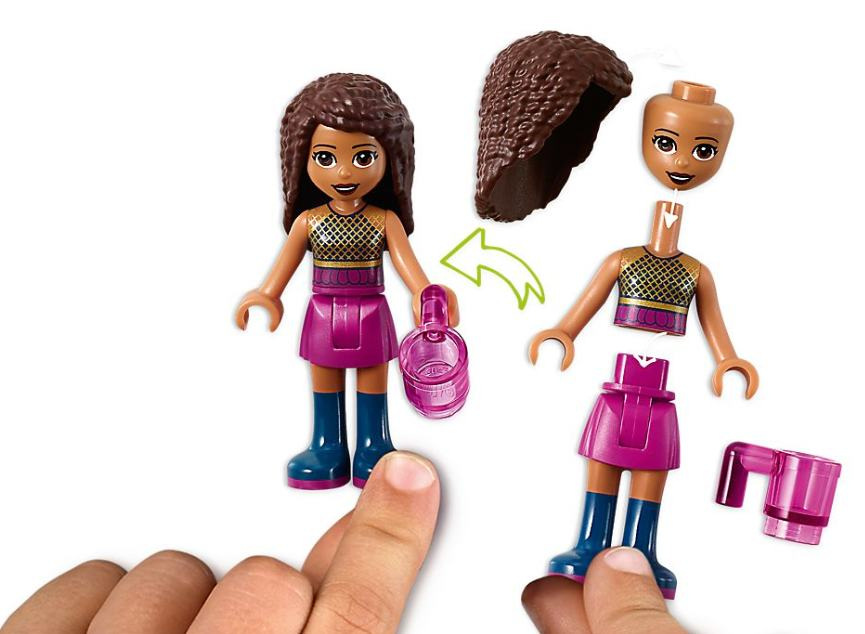 Součástí jsou 2 minifigurky: Andrea a LEGO Friends Chloe, a navíc figurka králíčka.