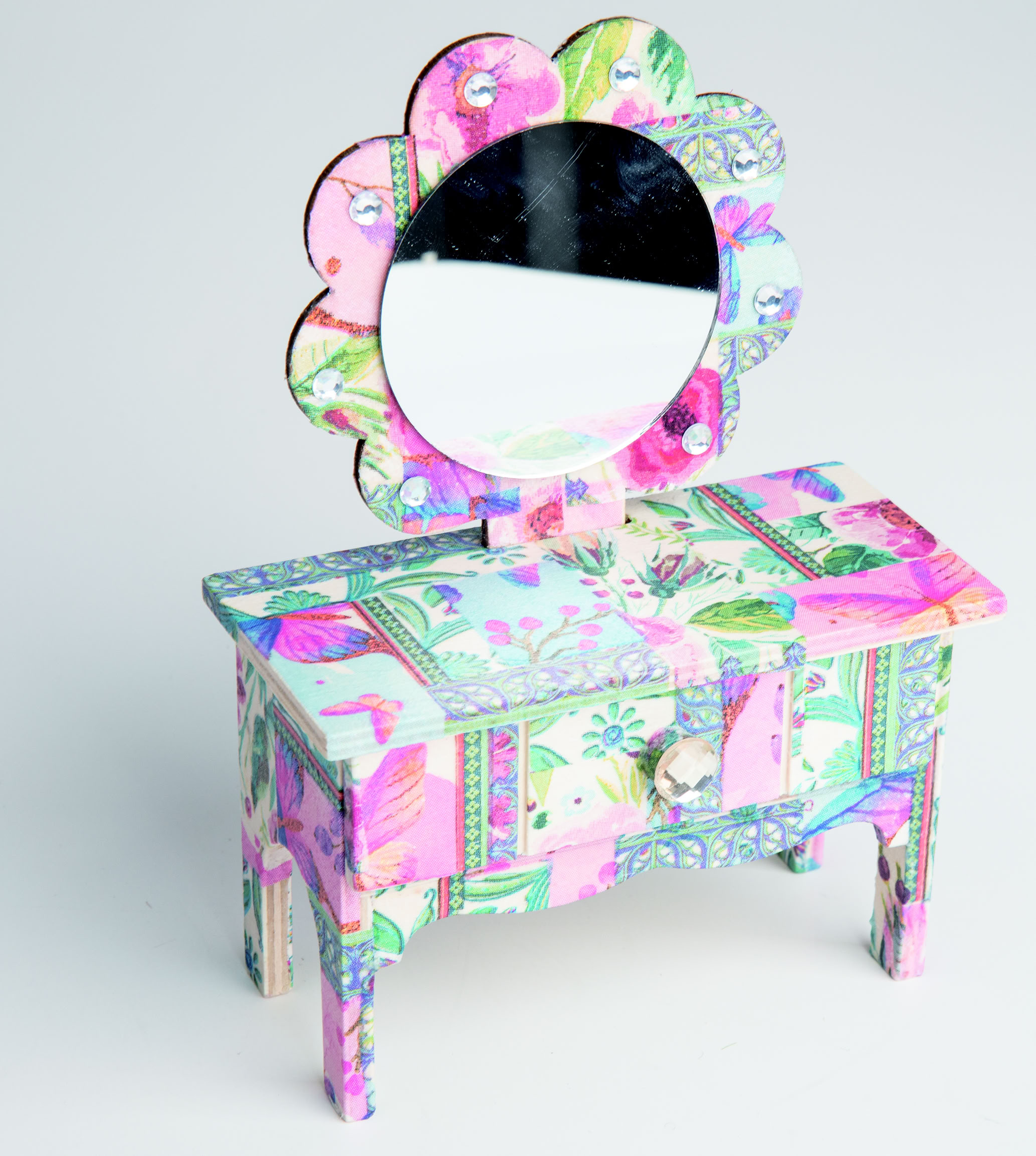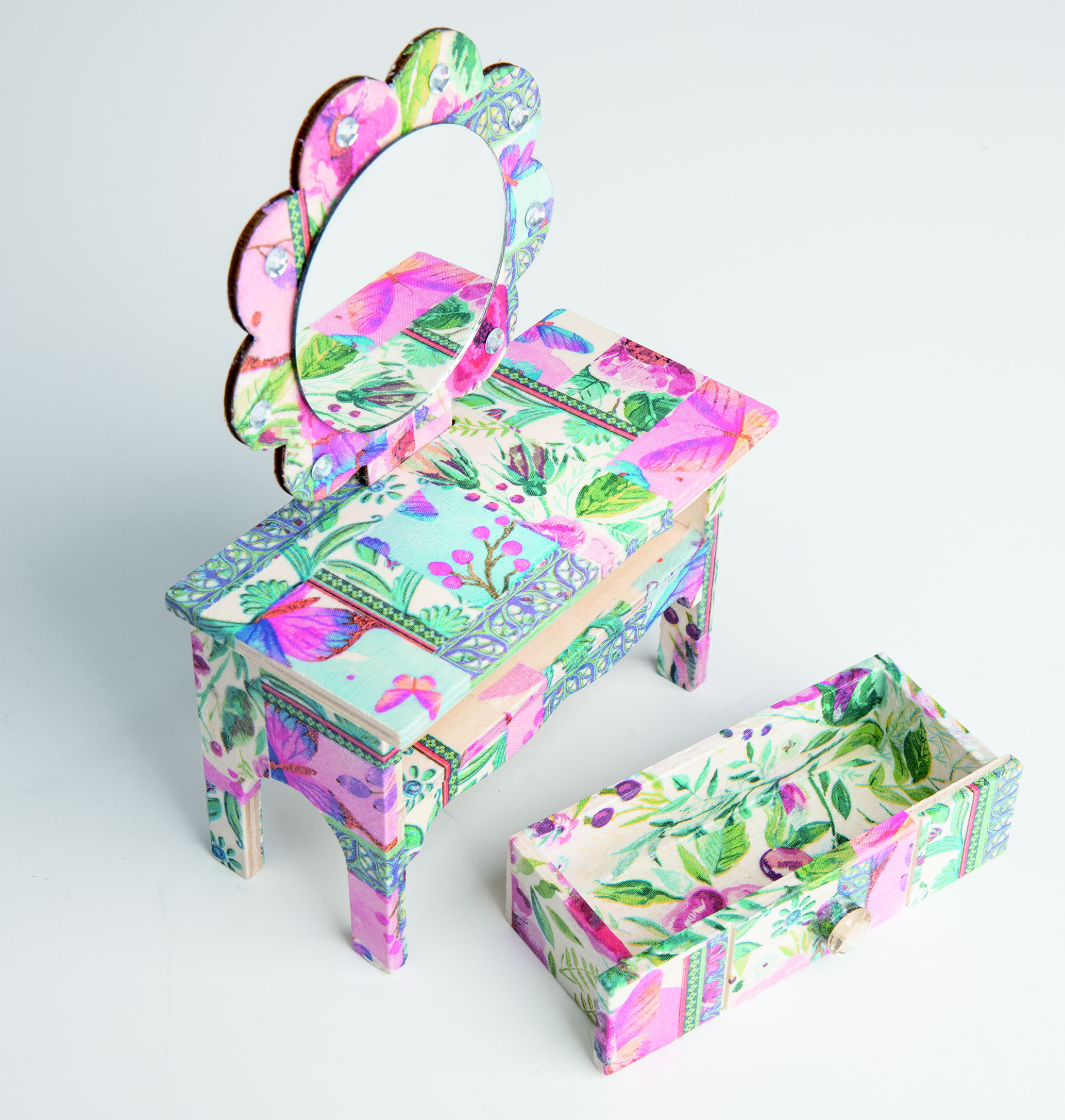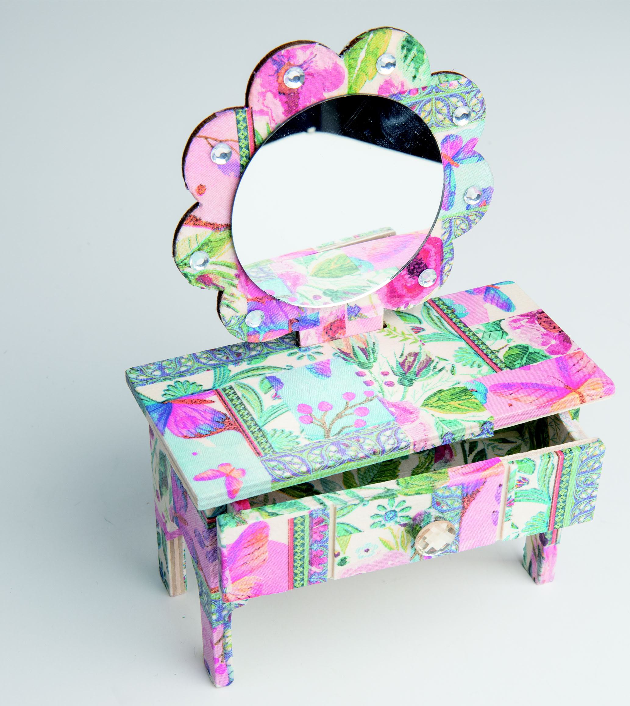 Vyrobte si vlastní originální šperkovnici. Se sestavou ARTO si užijete kreativní chvilky a vytvoříte si jedinečný úložný prostor pro své poklady. Tato sada obsahuje všechny potřebné díly pro sestavení a ozdobení dřevěné šperkovnice ve tvaru toaletního stolku pomocí oblíbené ubrouskové metody.