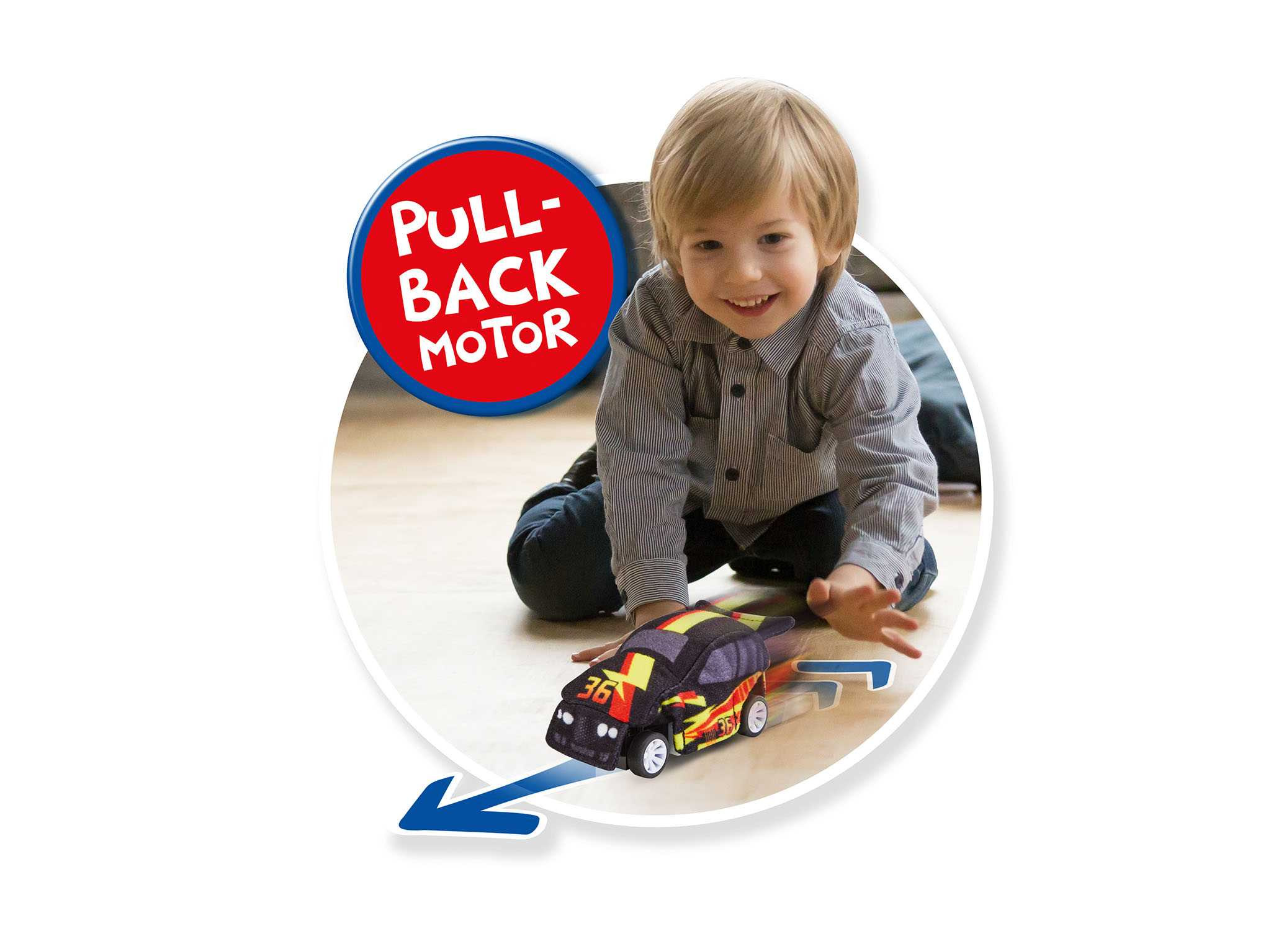 Autíčko na setrvačník pro děti od 2 let. Velikost: 9 cm. Odnímatelný a pratelný plyšový potah.