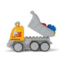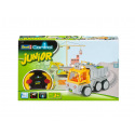 Informace o modelu: Skládací RC model autíčka na dálkové ovládání. Tento náklaďák se velmi snadno řídí, lze s ním jet dopředu i dozadu a zatáčet pomocí dvoukanálového MHz dálkového ovládání přizpůsobeného malým dětským rukám. Blikající LED žárovky dokreslují autentickou atmosféru staveniště a jsou zárukou vynikající zábavy. (jsou potřeba čtyři AA baterie a jedna 9V baterie, které nejsou součástí balení)