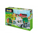 Informace o modelu: Popeláři jedou! Tento model na dálkové ovládání zvládnou bez problémů řídit i malé děti. Zásluhu na tom má především speciálně upravený jednoduchý 2kanálový MHz dálkový ovladač, se kterým lze s modelem jezdit dopředu/dozadu i do stran. S rozsvícenými LED světlomety se popelářské auto řítí ulicemi a všechny malé popeláře zaručeně zabaví (jsou potřeba 4 x AA a 1 x 9V baterie, které nejsou součástí balení).