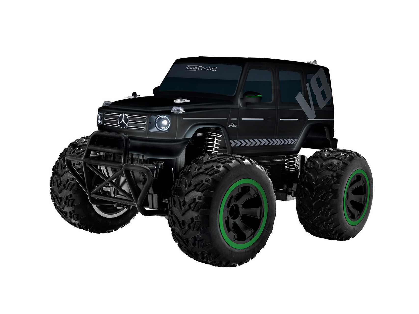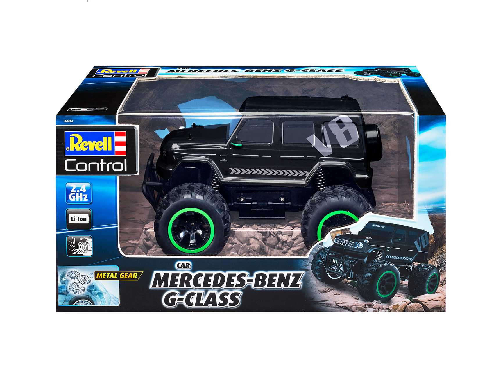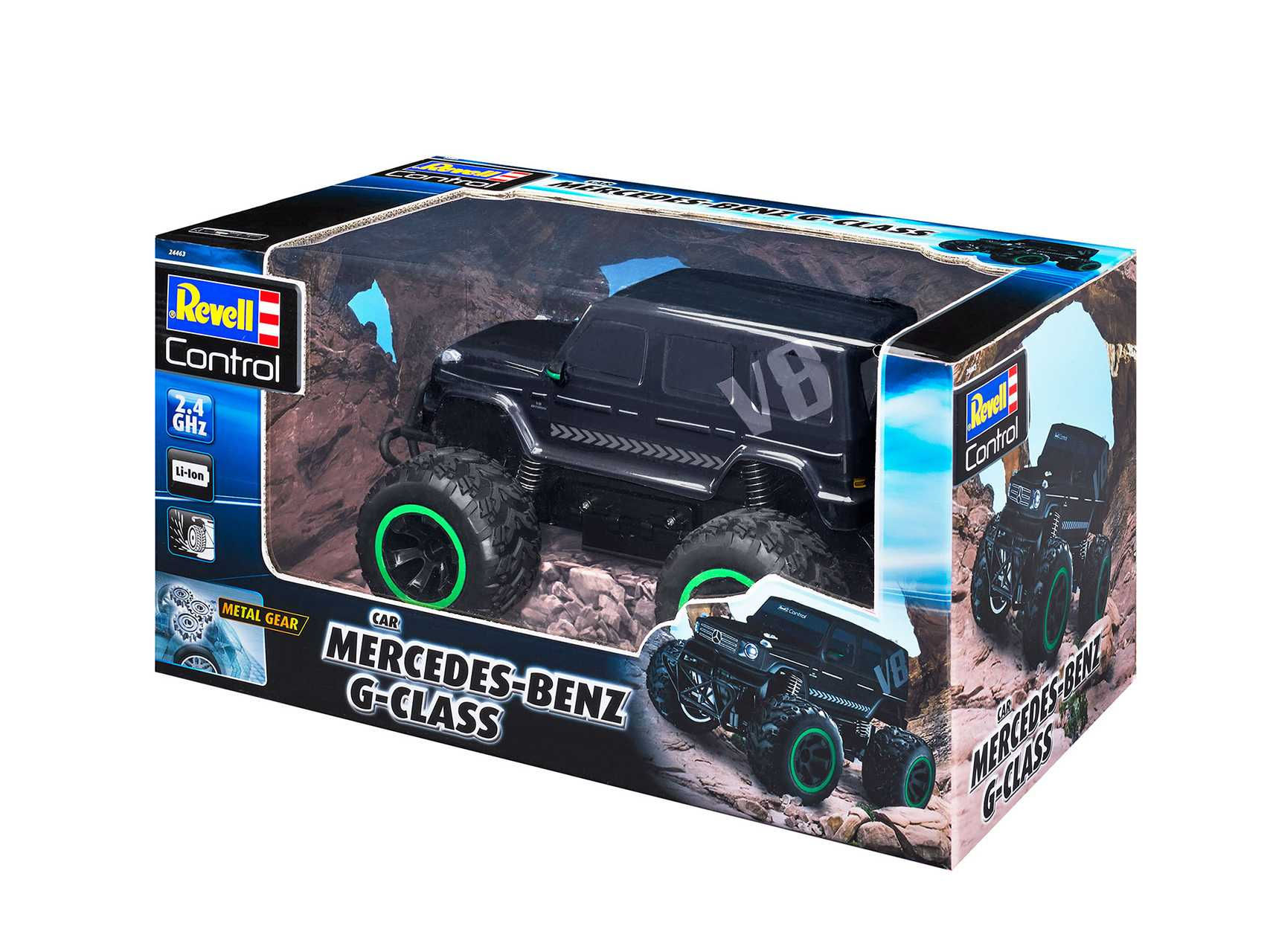 Již více než 40 let je Mercedes G ztělesněním dokonalosti a schopnosti jízdu v terénu. Jeho nezaměnitelná karoserie z něj dělá jedinečný vůz. V provedení od Revell Control se vám do ruky dostane vynikající kombinace věrné imitace slavného automobilu a monster trucku. Velké pneumatiky a technologie odolná proti cákání vody s bytelným kovovým převodovým ústrojím dostanou model skrz jakýkoliv terén stejně jako jeho skutečnou předlohu. Díky 2,4GHz dálkovému ovládání může vedle sebe najednou jezdit i několik autíček, takže se zábavě meze skutečně nekladou. Přiloženou baterii lze po každé jízdě snadno dobít pomocí USB nabíječky.