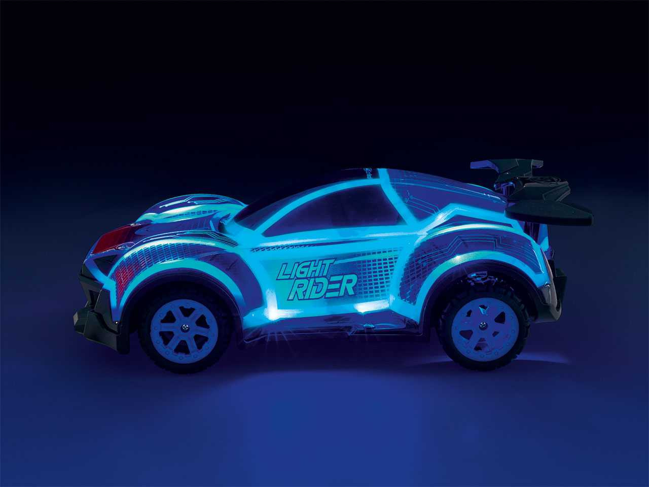 Informace o modelu: Light Rider v měřítku 1:16 v sobě skrývá úžasné světelné efekty. Vyber si jeden ze světelných režimů, zapni zvuk a rozjeď závod temnotou. Dálkové ovládání 2,4 GHz ti umožní řídit s několika přáteli současně a má také integrované důmyslné světelné efekty. Pro napájení je dodávána 3,7V Li-Ion baterie s odpovídající USB nabíječkou. Jsi připraven na noční závod?