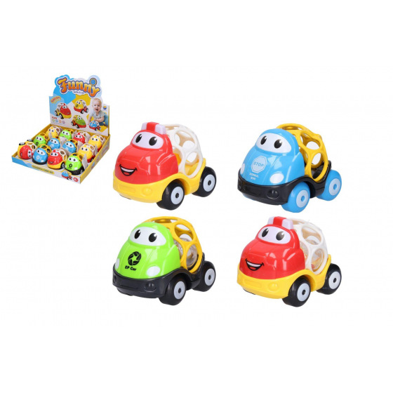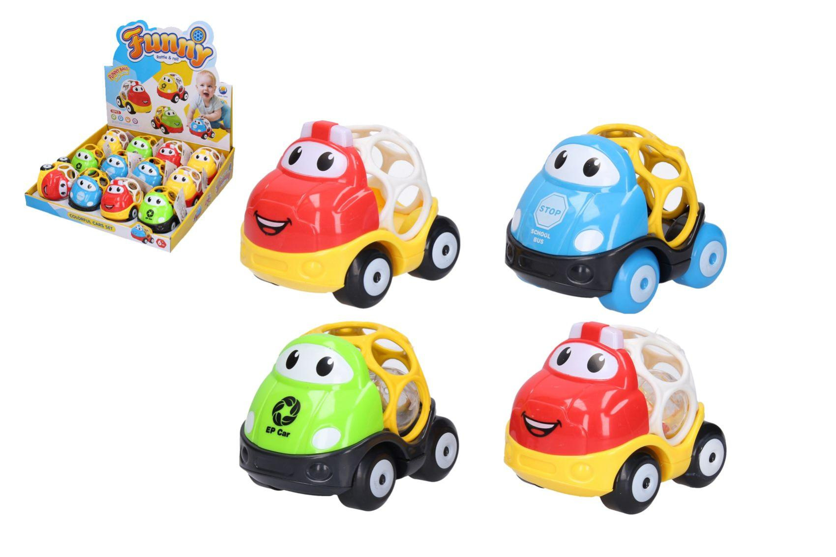 Autíčko s chrastítkem plast 9,5cm 4 barvy 12ks v boxu 6m+