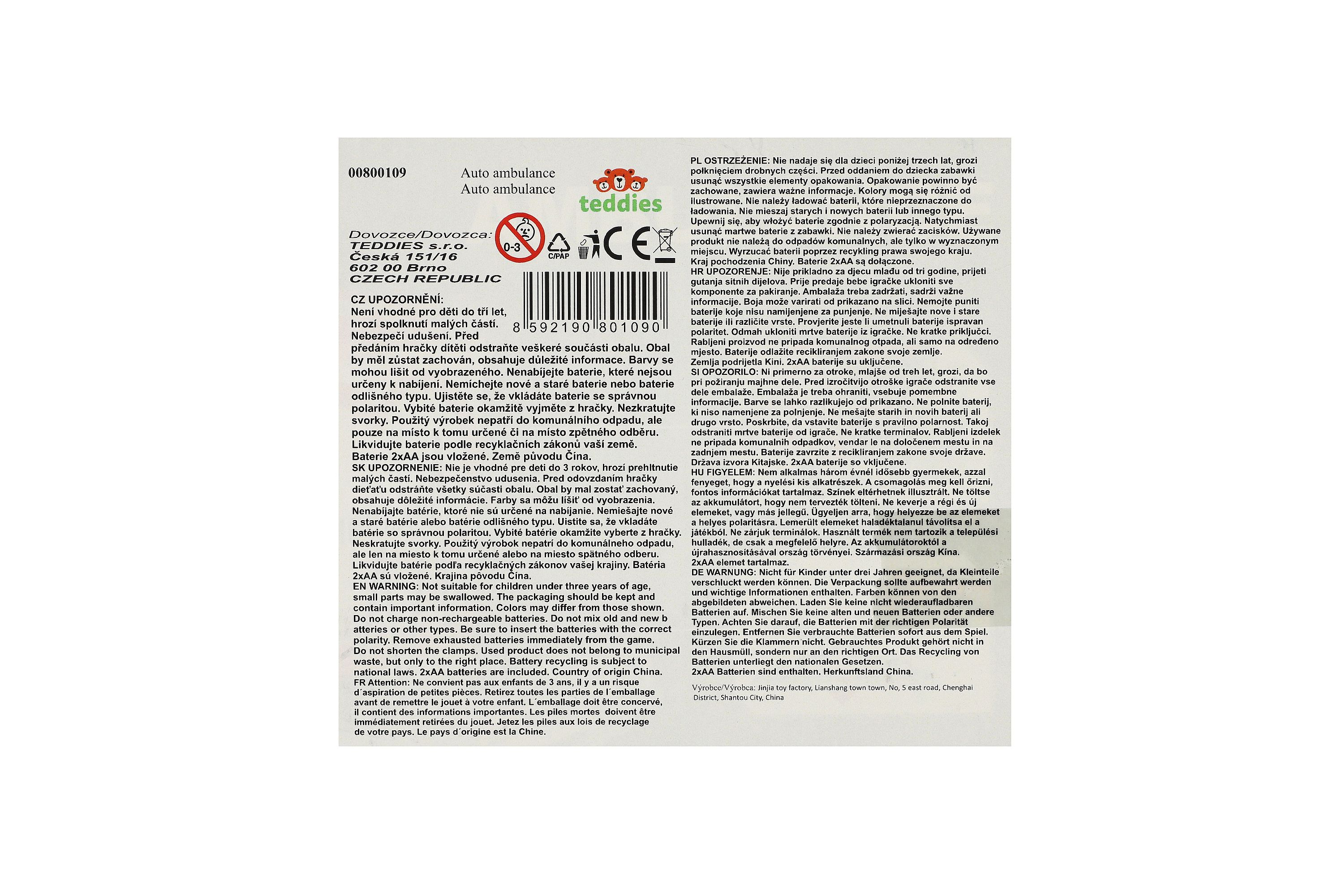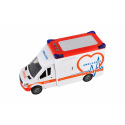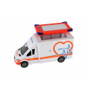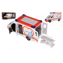 Ambulance je vozidlo, které se využívá při přepravě zraněných pacientů, k dopravě raněných nebo nemocných. Navíc ambulance disponuje lehátkem pro převoz pacientů. Baterie 2x AA jsou součástí výrobku. Ambulance má otevírací dveře a je na setrvačník. Vyrobeno z kvalitního a odolného plastu. Velikost auta je 28 cm. Rozměry balení 39 x 18 x 12 cm Vhodné pro děti od 3 let.
