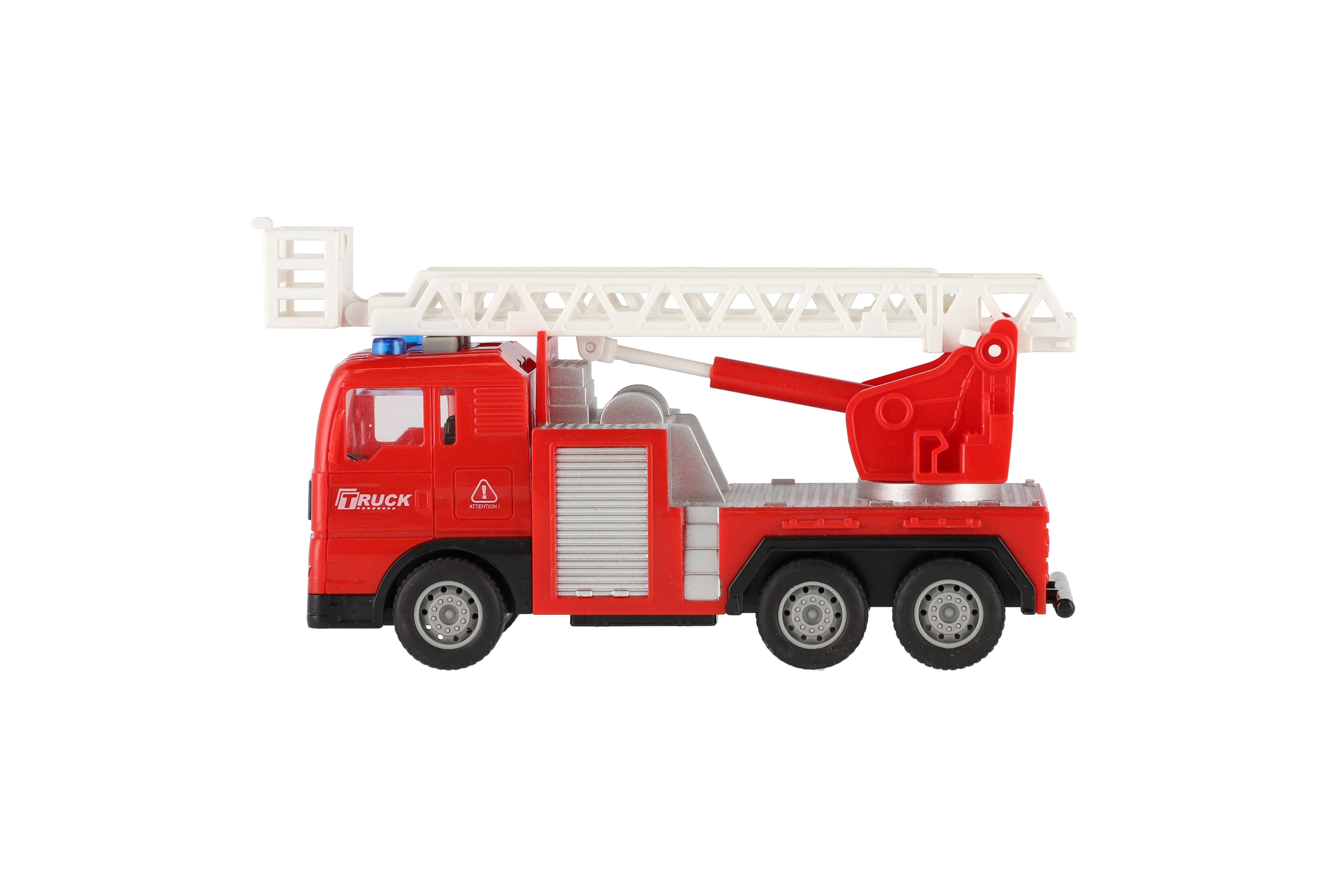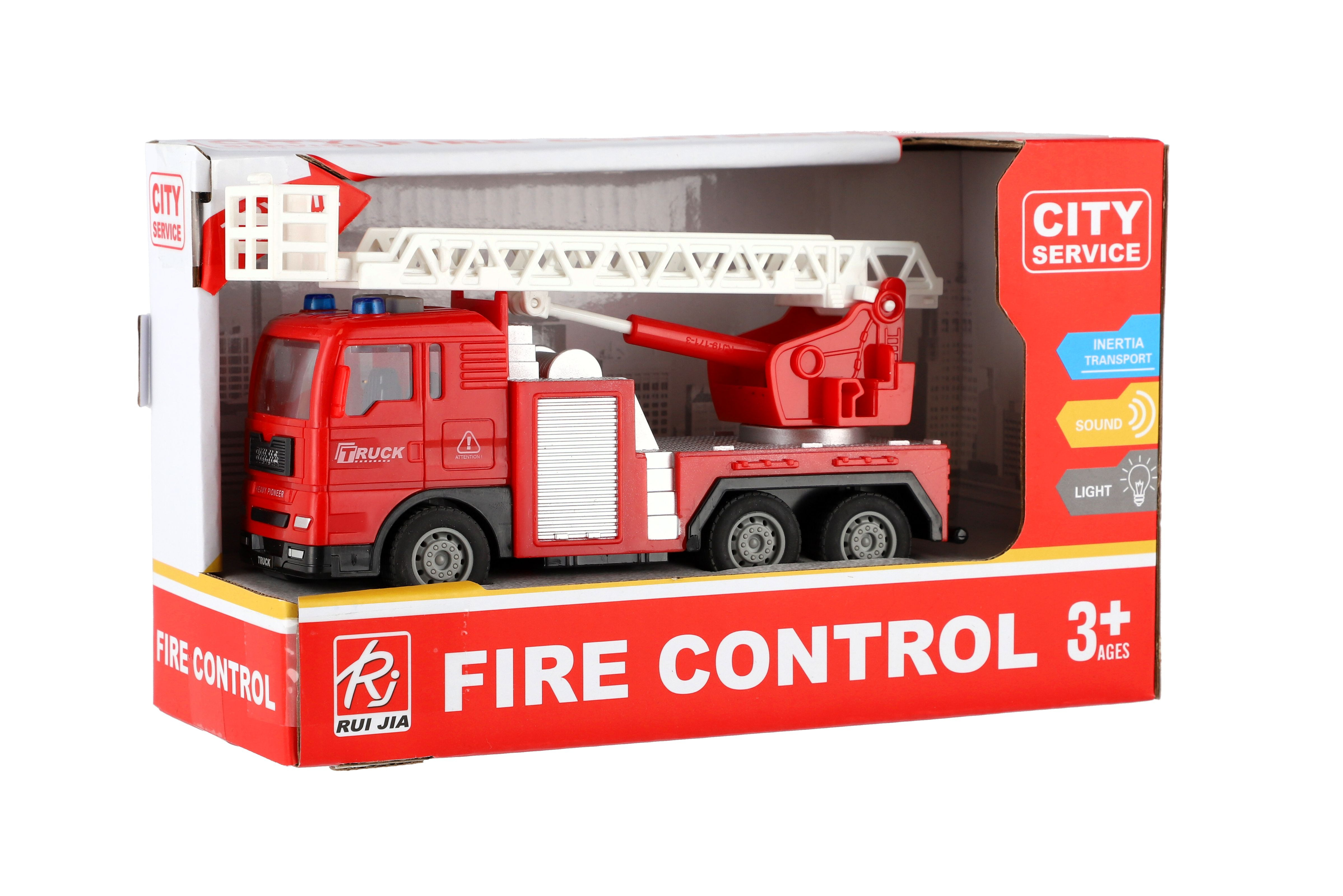 Auto hasiči plast 16cm na setrvačník na baterie se světlem se zvukem v krabici 21x13x9cm