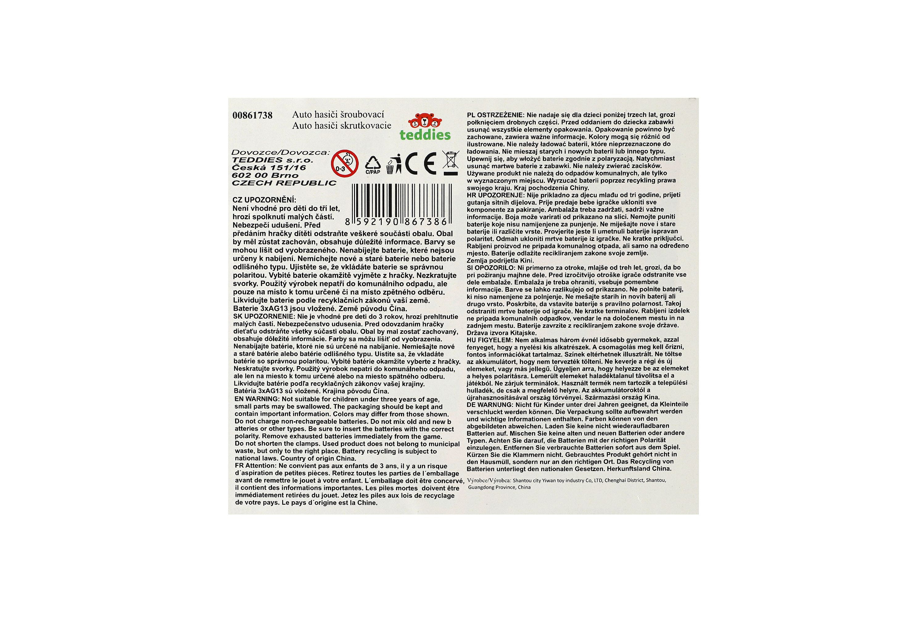 Auto hasiči šroubovací plast 36cm stříkací vodu na setrvačník na bat. se zvukem se světlem v krabici