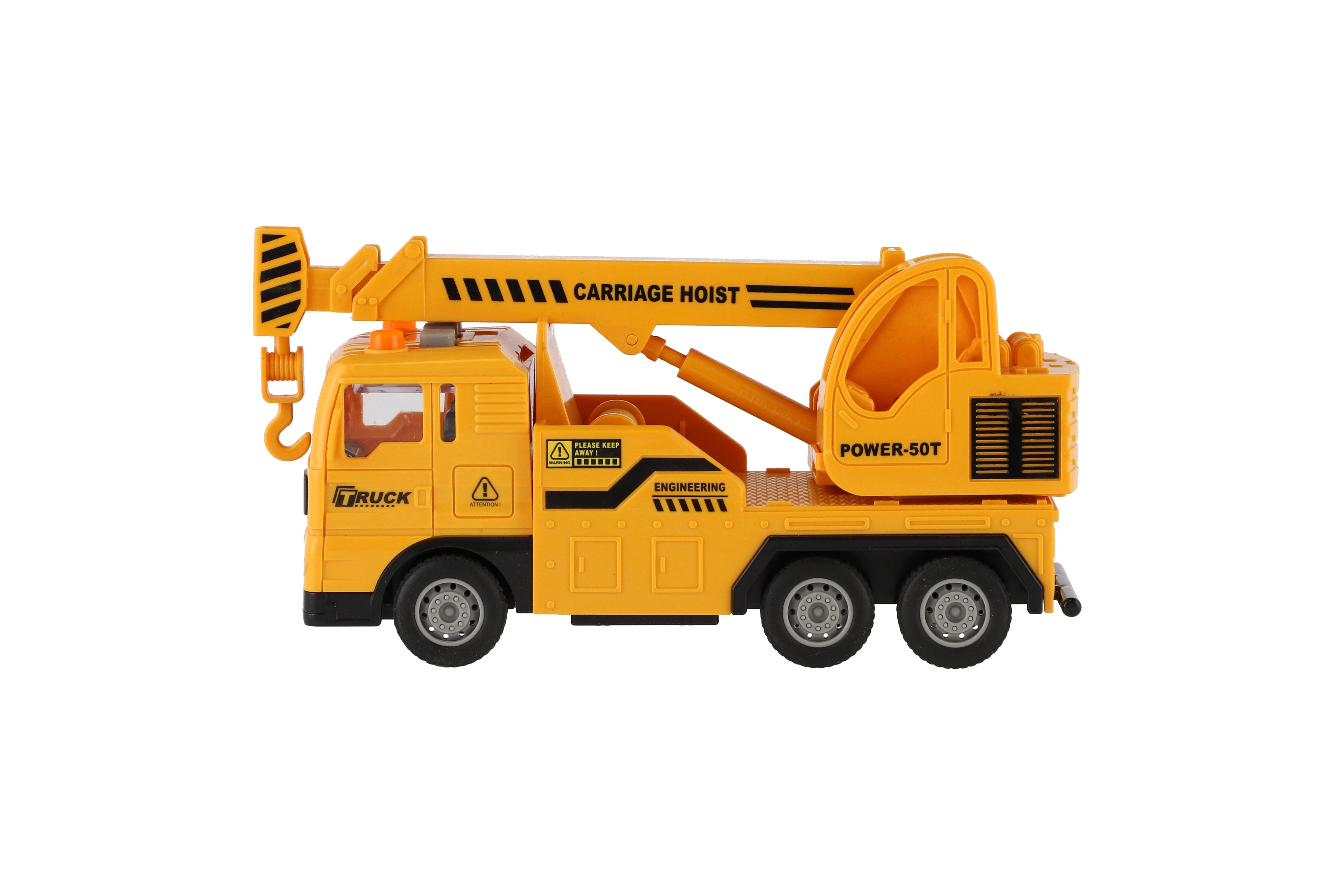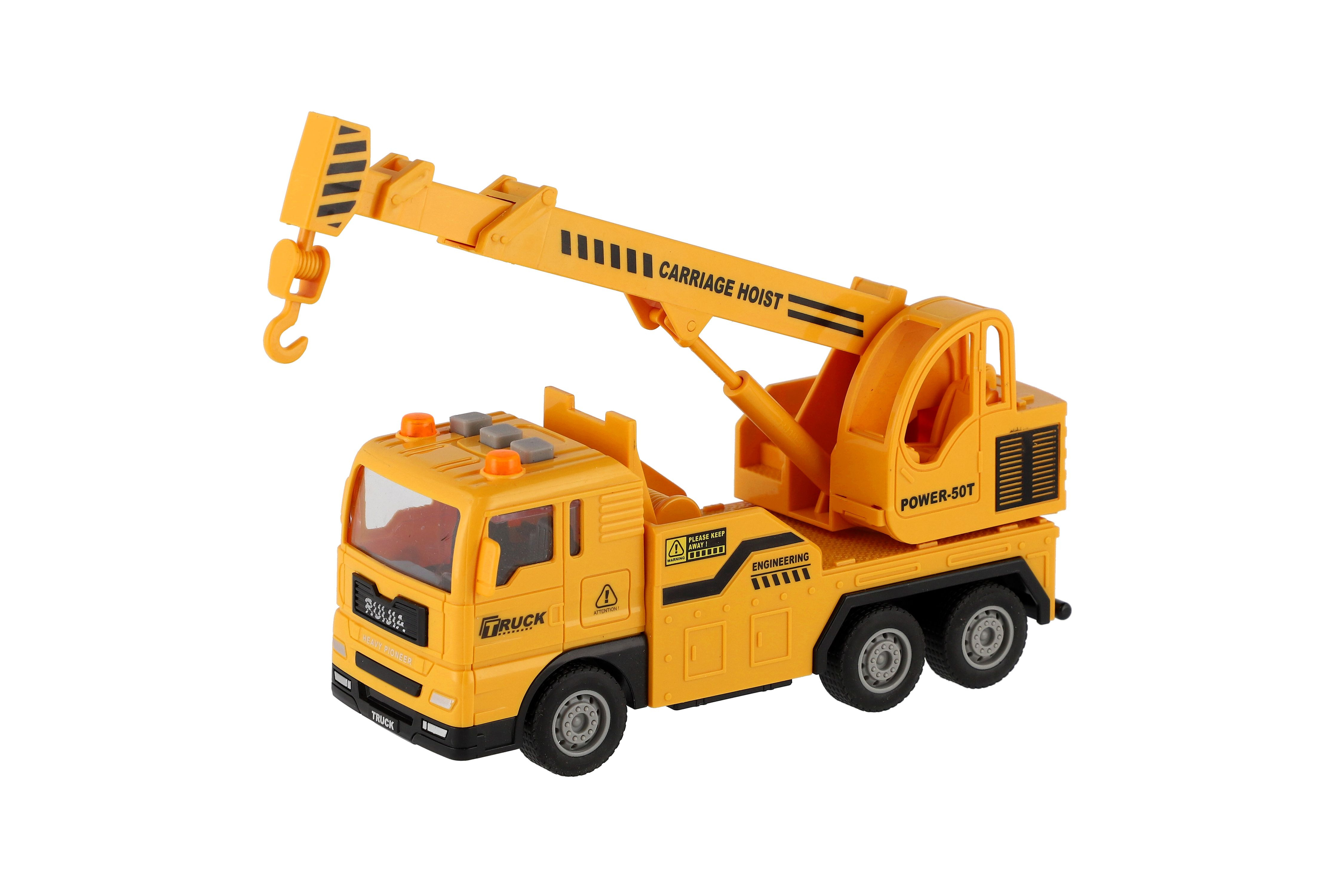 Auto jeřáb doplní sbírku každého malé stavaře. Auto je na setrvačník v měřítku 1:32. Auto vydává zvuky a svítí mu majáčky na střeše. Baterie: 3 x AG13, jsou součástí výrobku Rozměr auta: 16 cm Rozměr krabice: 21 x 13 x 19 cm Vhodné pro děti od 3 let