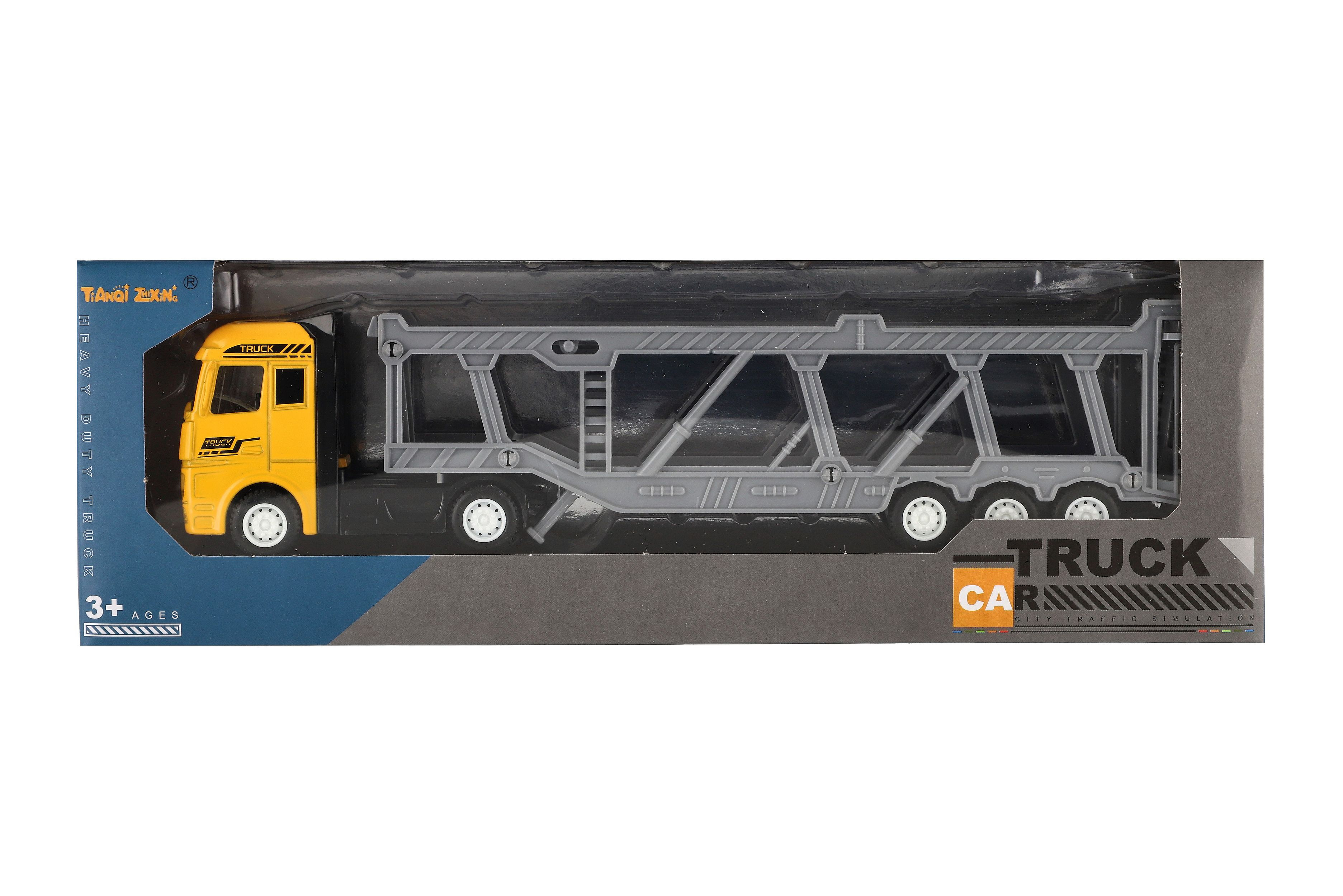 Auto kamion přepravník plast 22cm na volný chod v krabičce 26x9x4cm