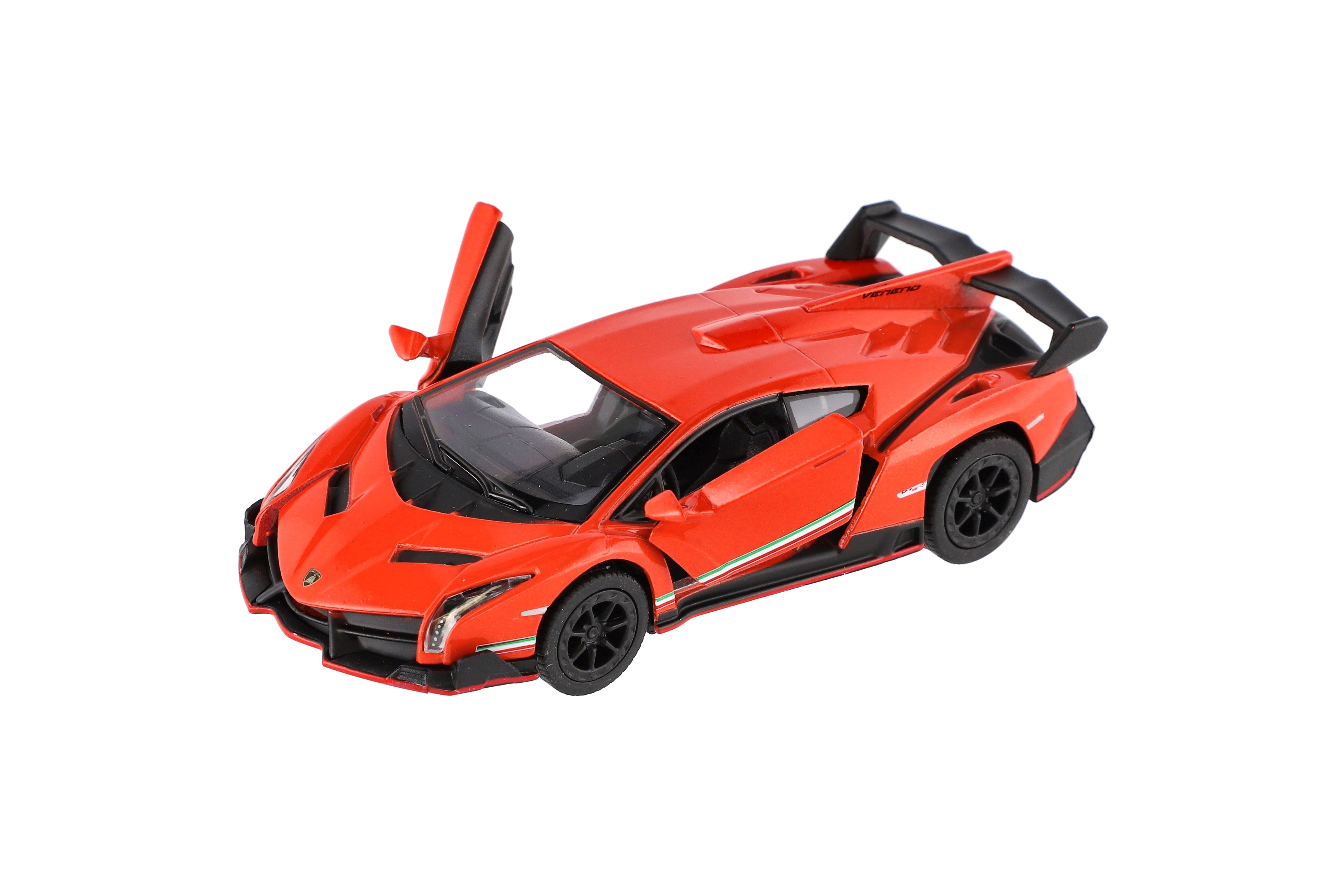 Krásný a věrný kovový model sportovního auta Lamborghini Veneno. Dostupné je ve 4 barevných variantách a je na zpětné natažení. Vhodné od 3 let.