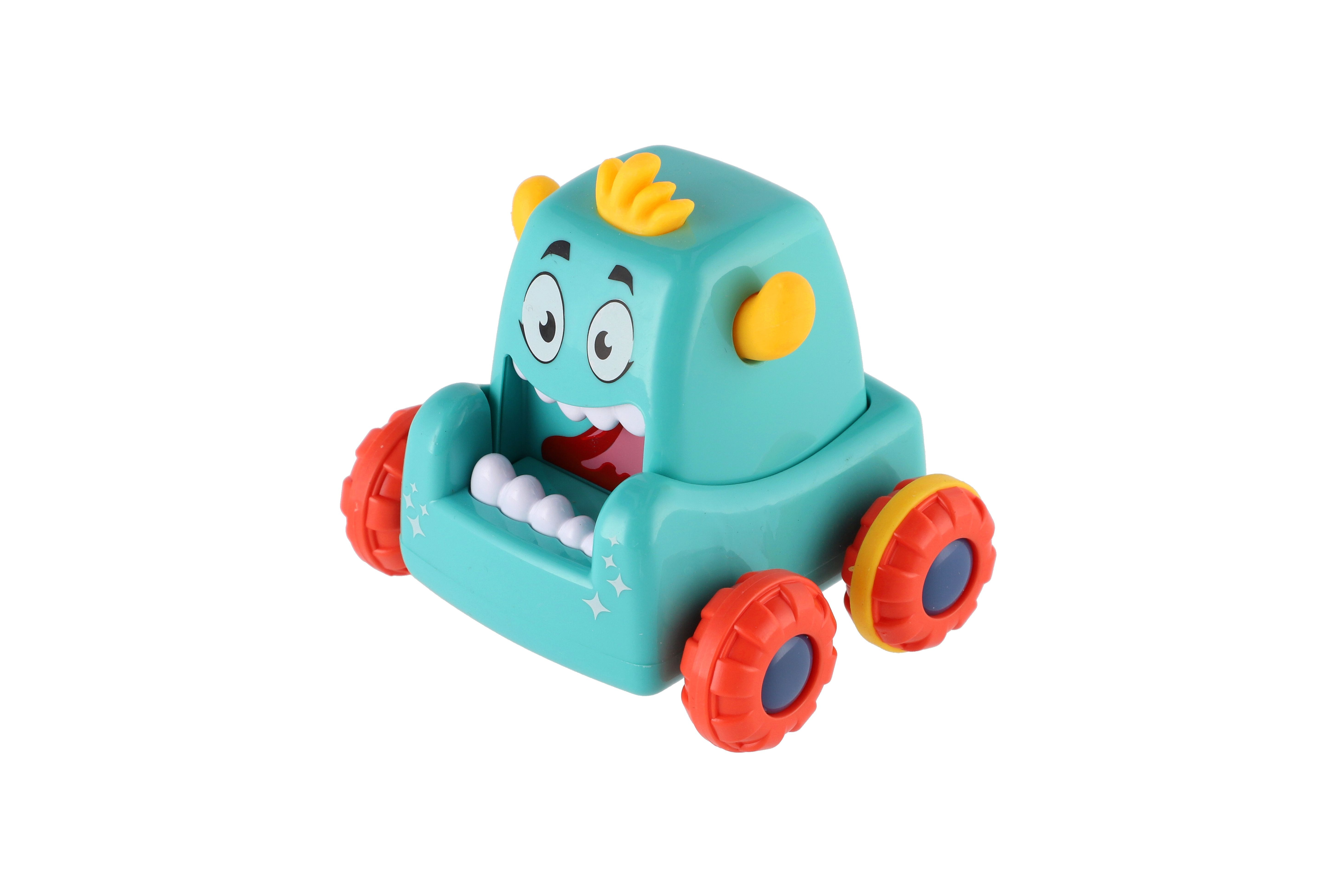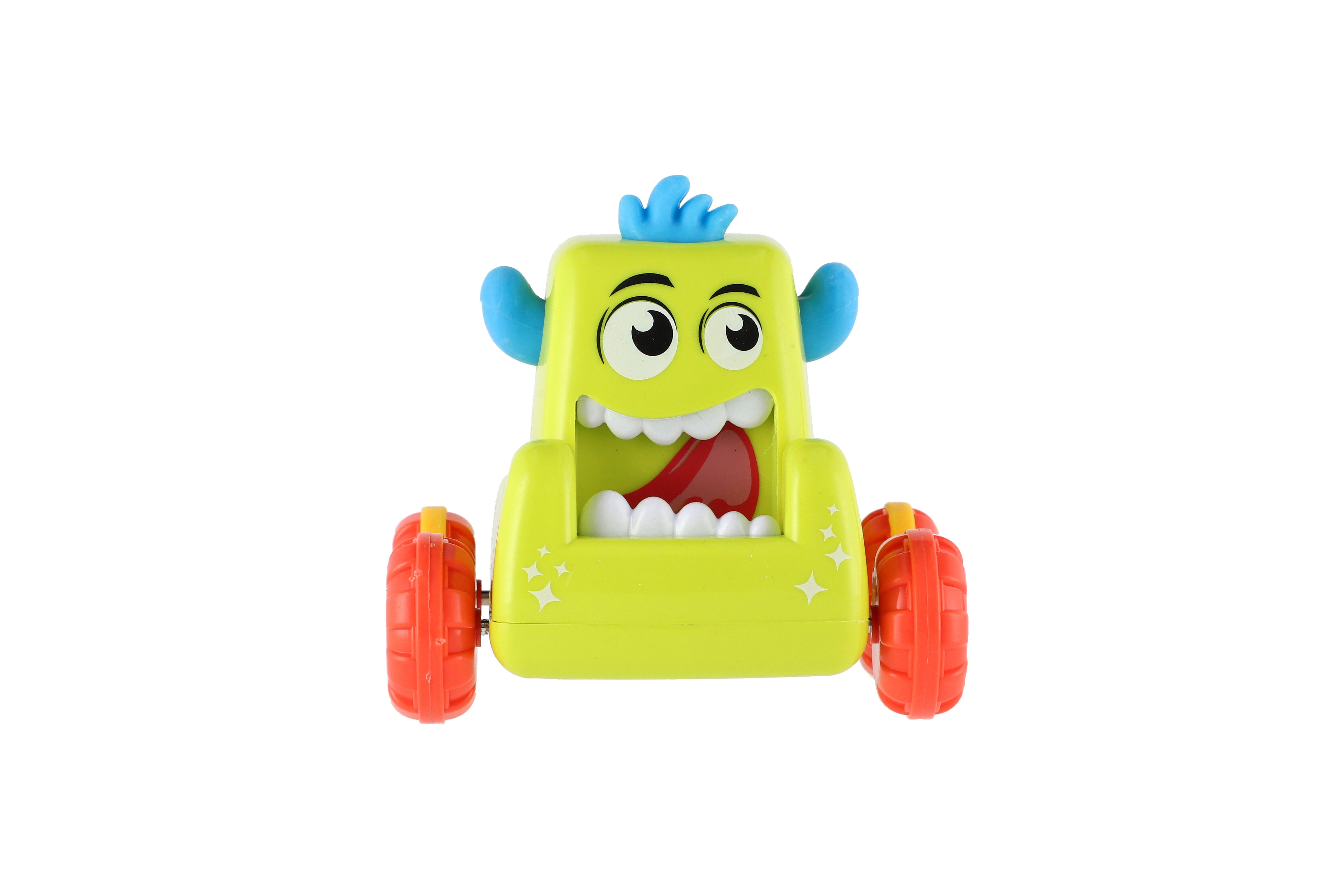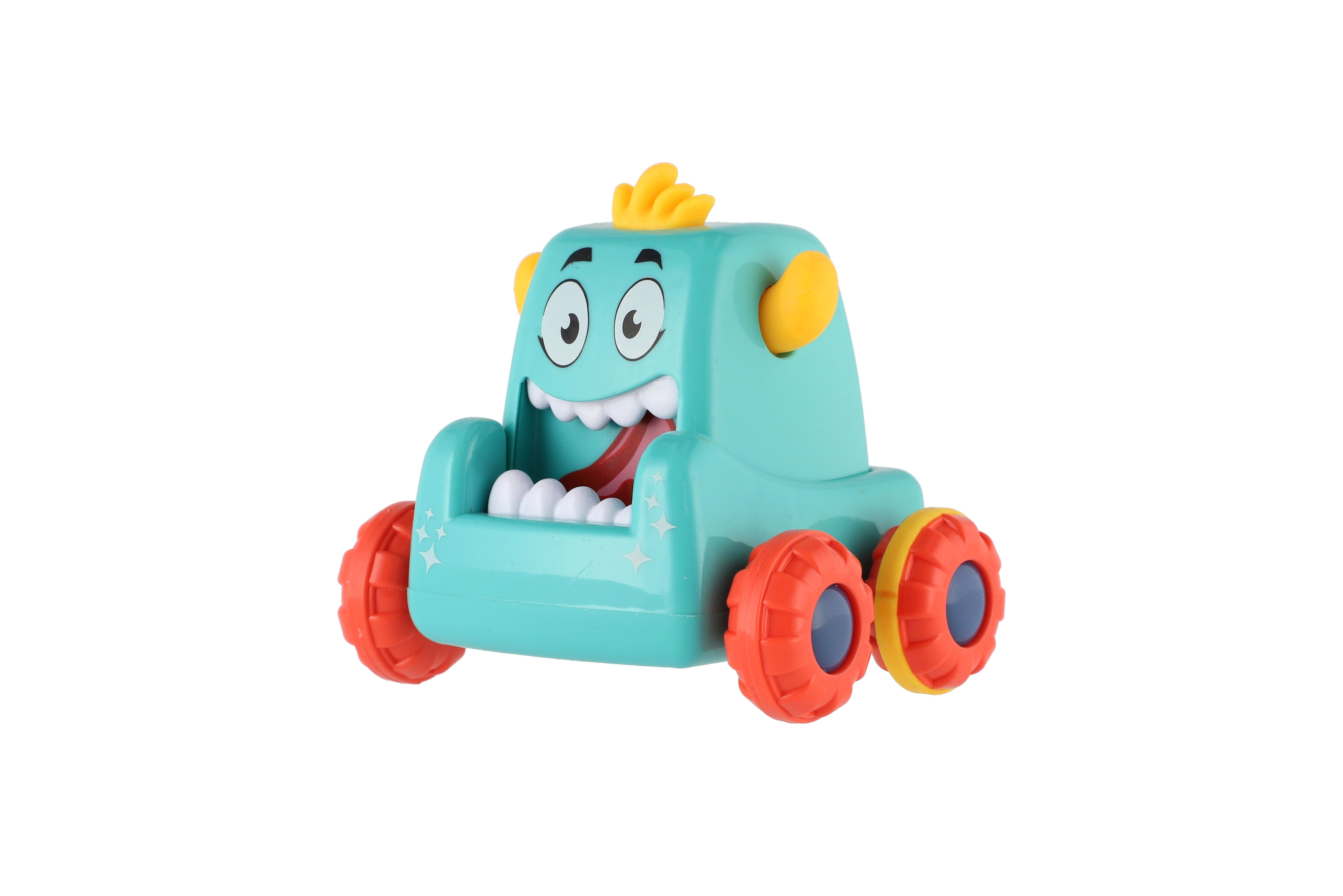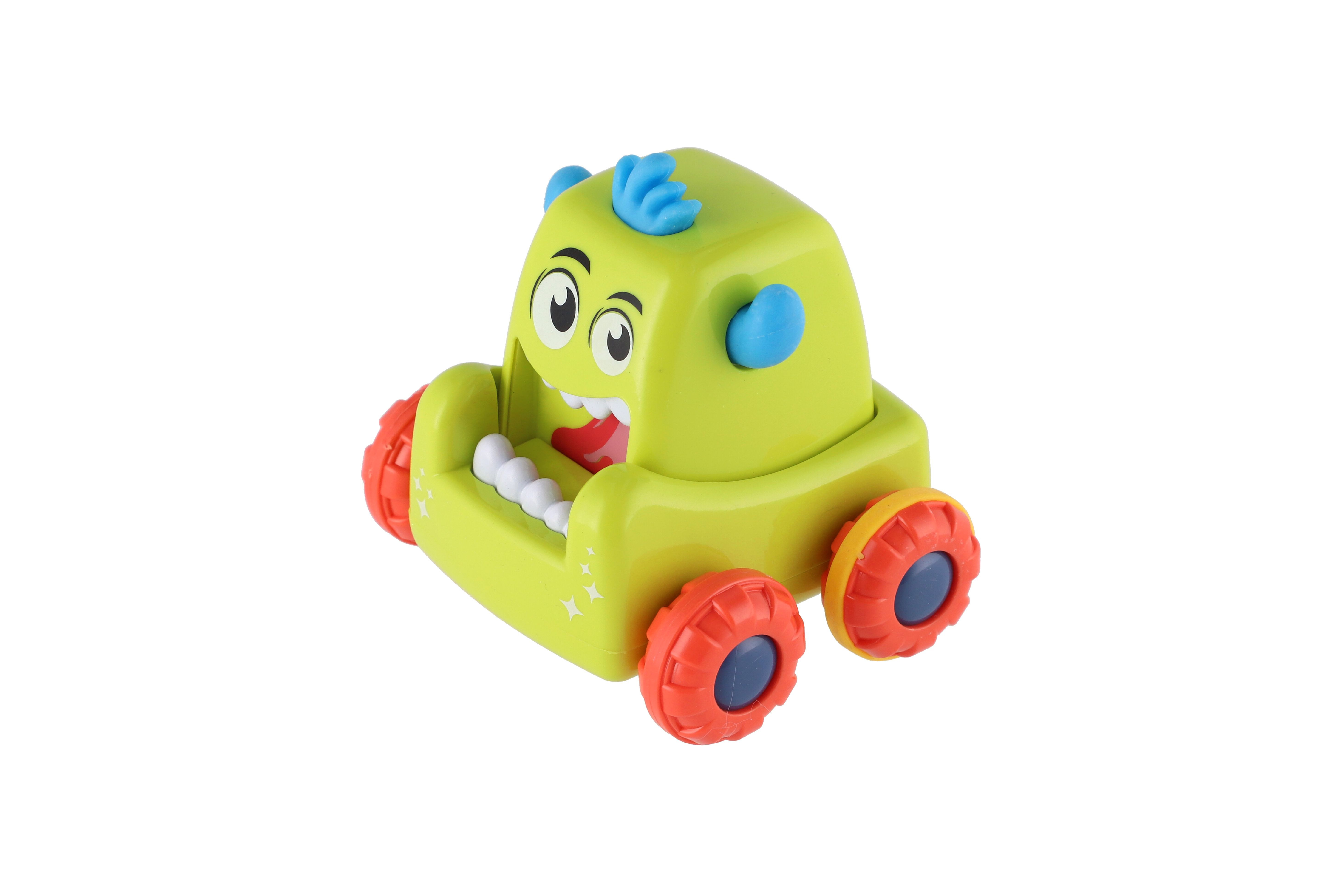 Stiskněte hlavu monster auta, pusťte ji a malá příšerka vyrazí rychle vpřed. Rozměr auta: 9 x 8 cm Vhodné od 3 let