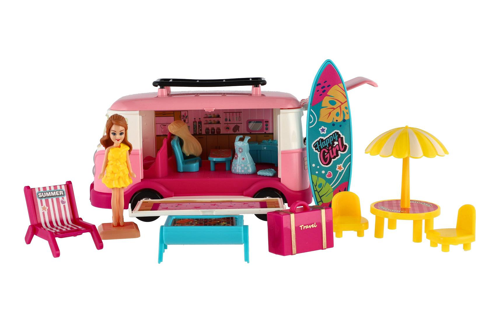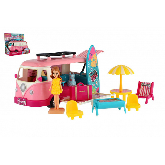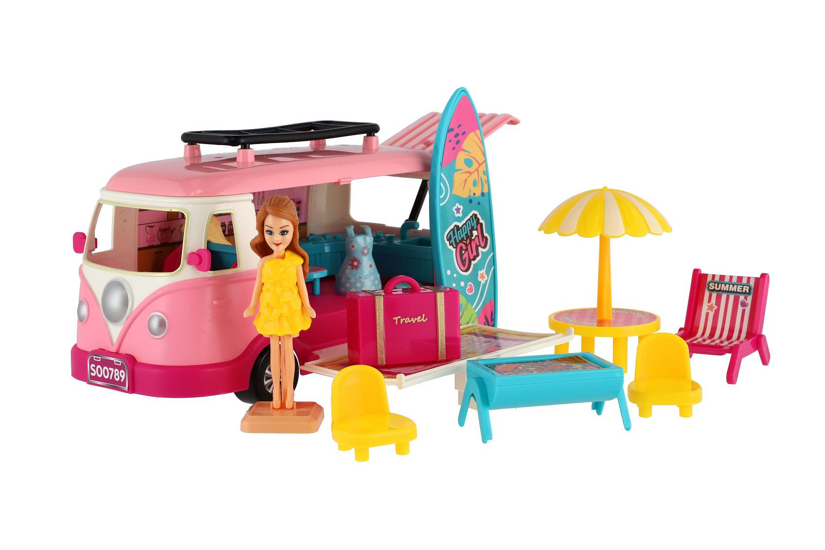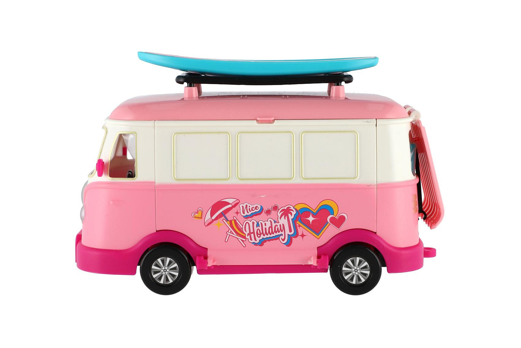 Vydejte se na dobrodružnou cestu s obytným autem. Stylové vozidlo v atraktivním designu potěší všechny malé objevitele. Součástí balení jsou i tematické doplňky, například surf a další vybavení, díky kterým si děti mohou vytvářet vlastní prázdninové příběhy a užít si ještě více zábavy.