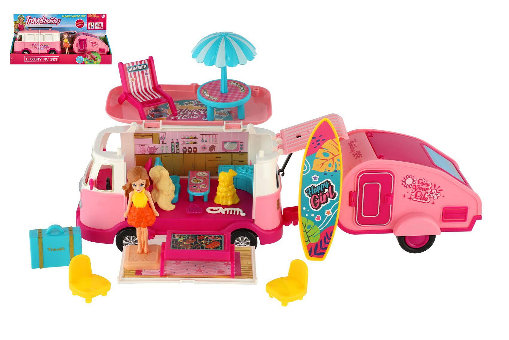 Popis Teddies Auto obytné s vlekem retro s panenkou s doplňky v krabici