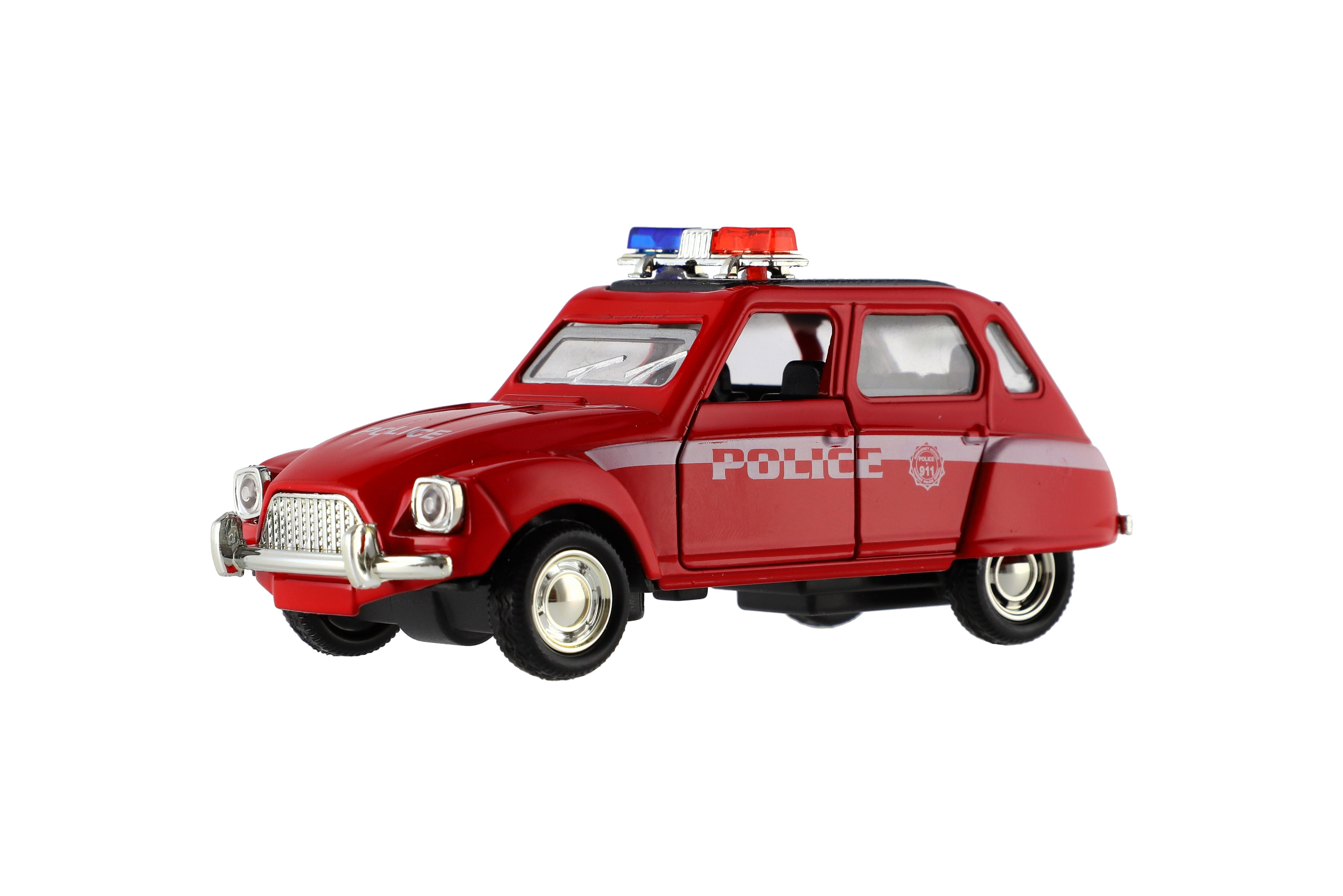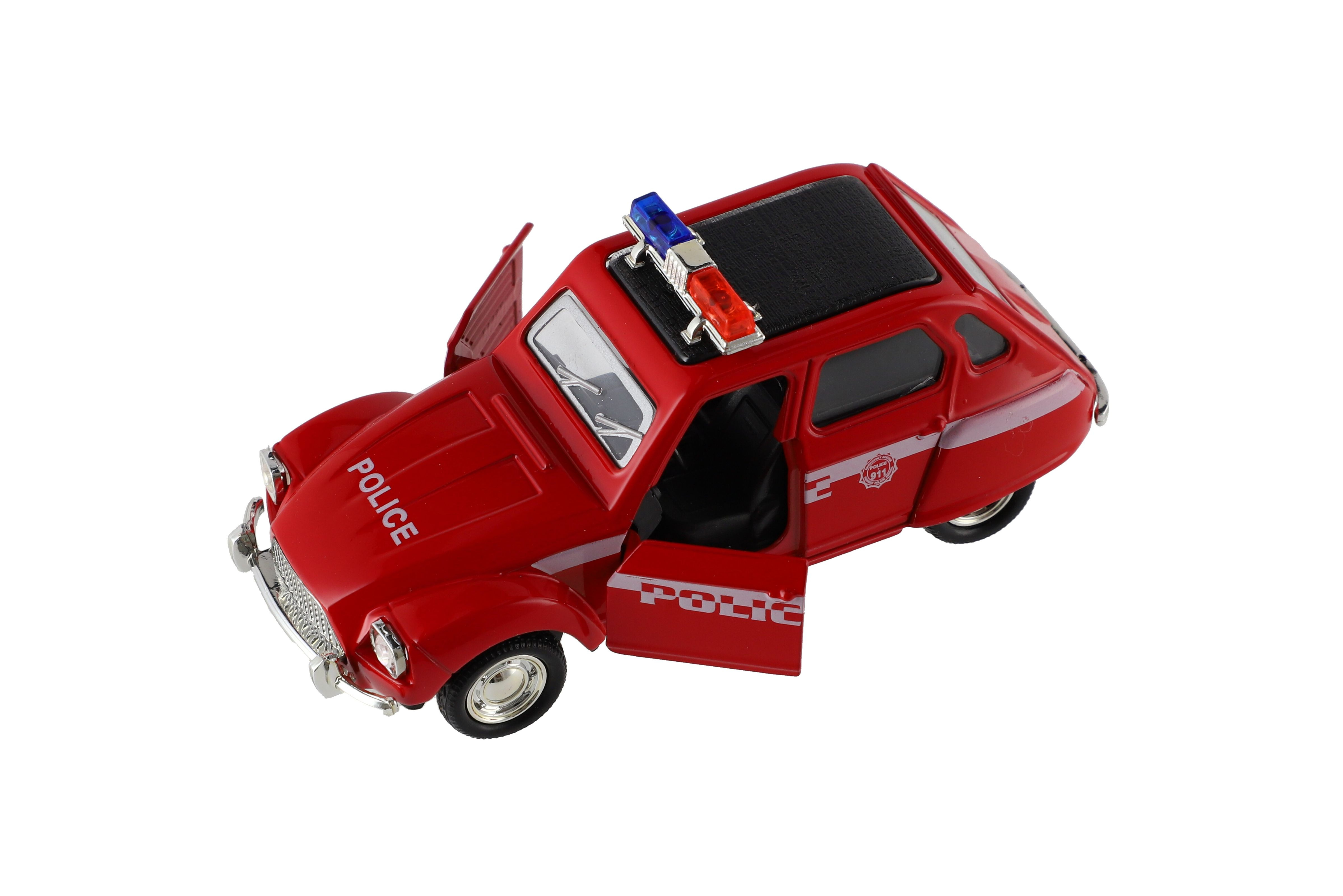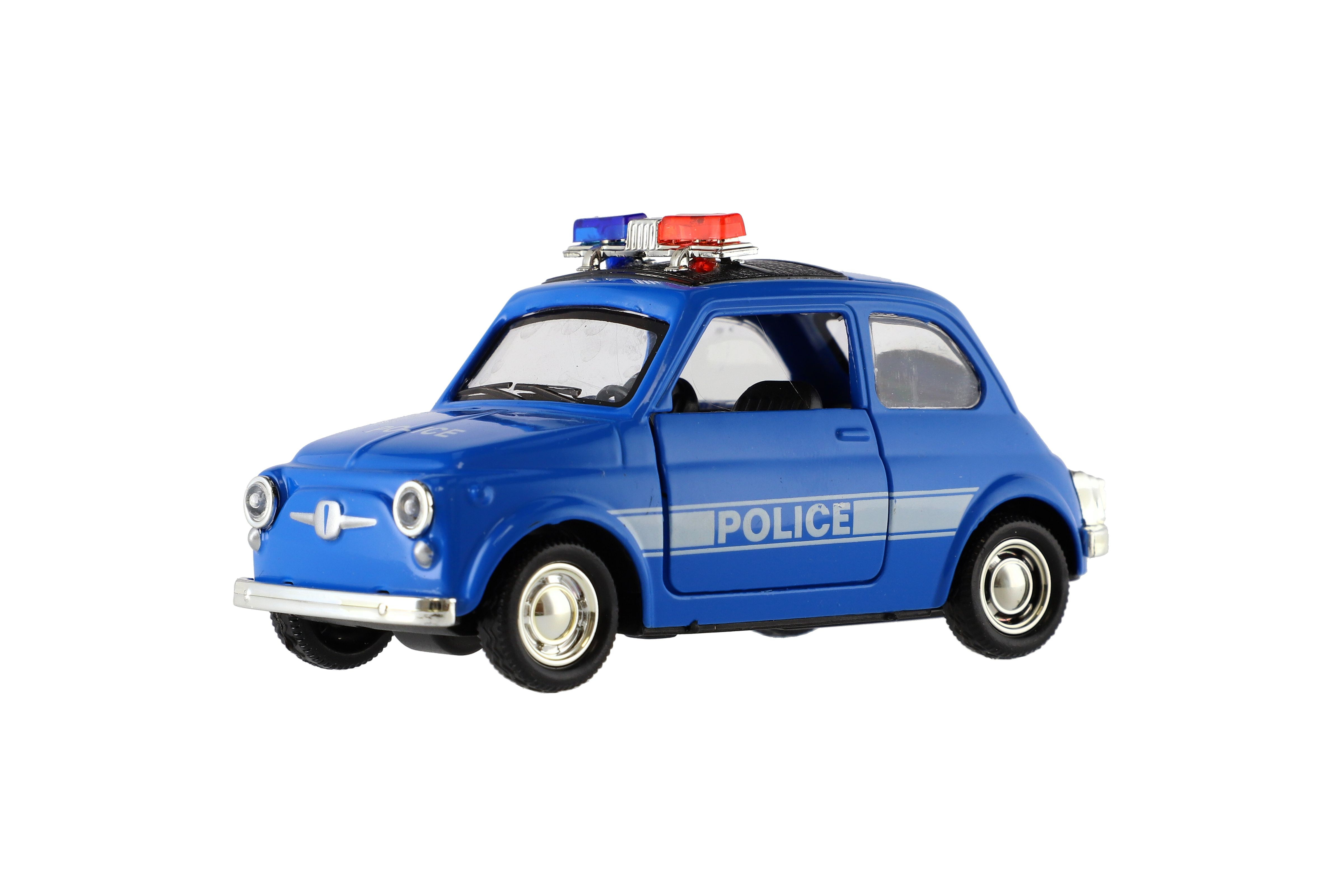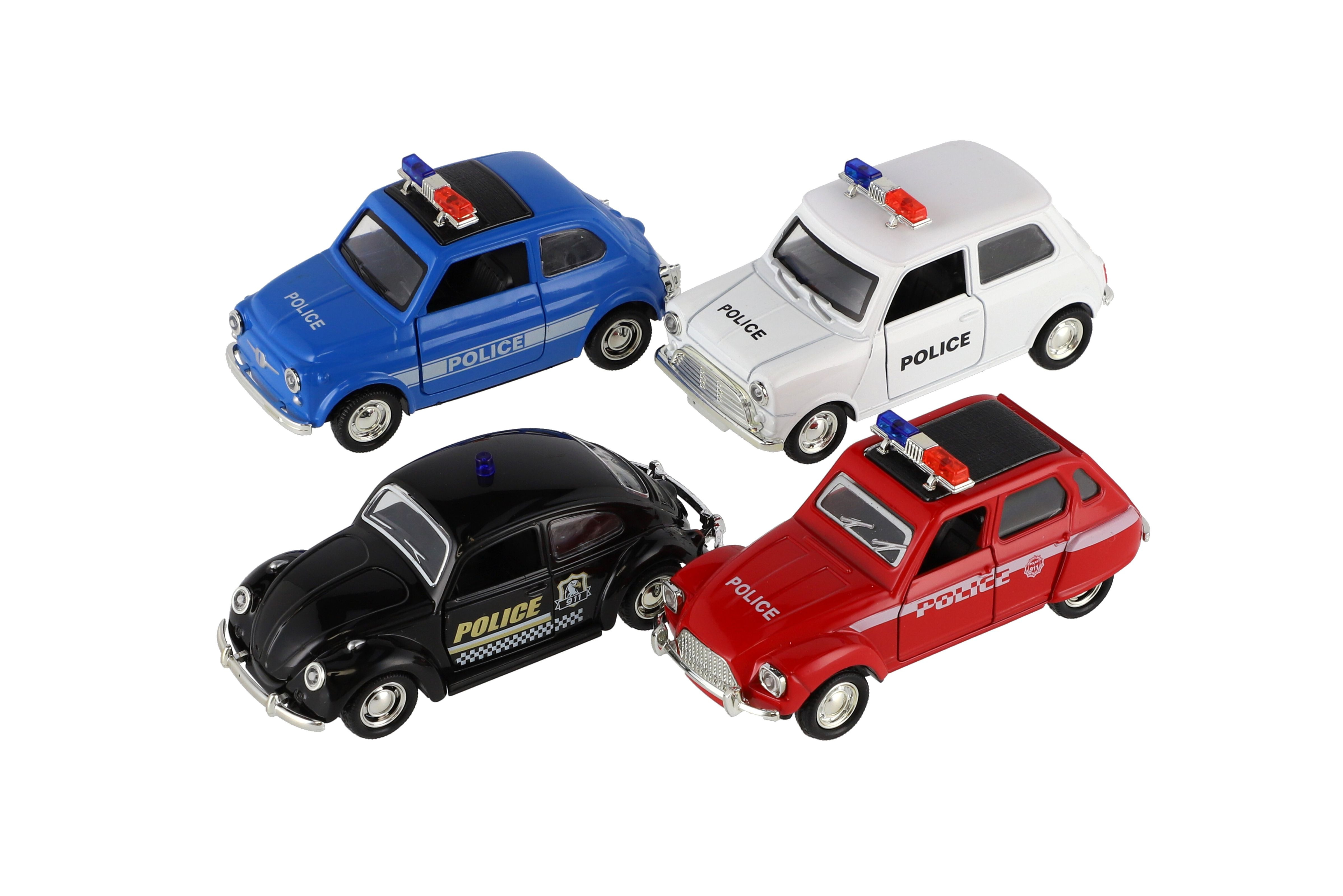 Teddies Auto policie retro 11cm kov/plast na zpětné natažení na baterie se světlem 4 druhy