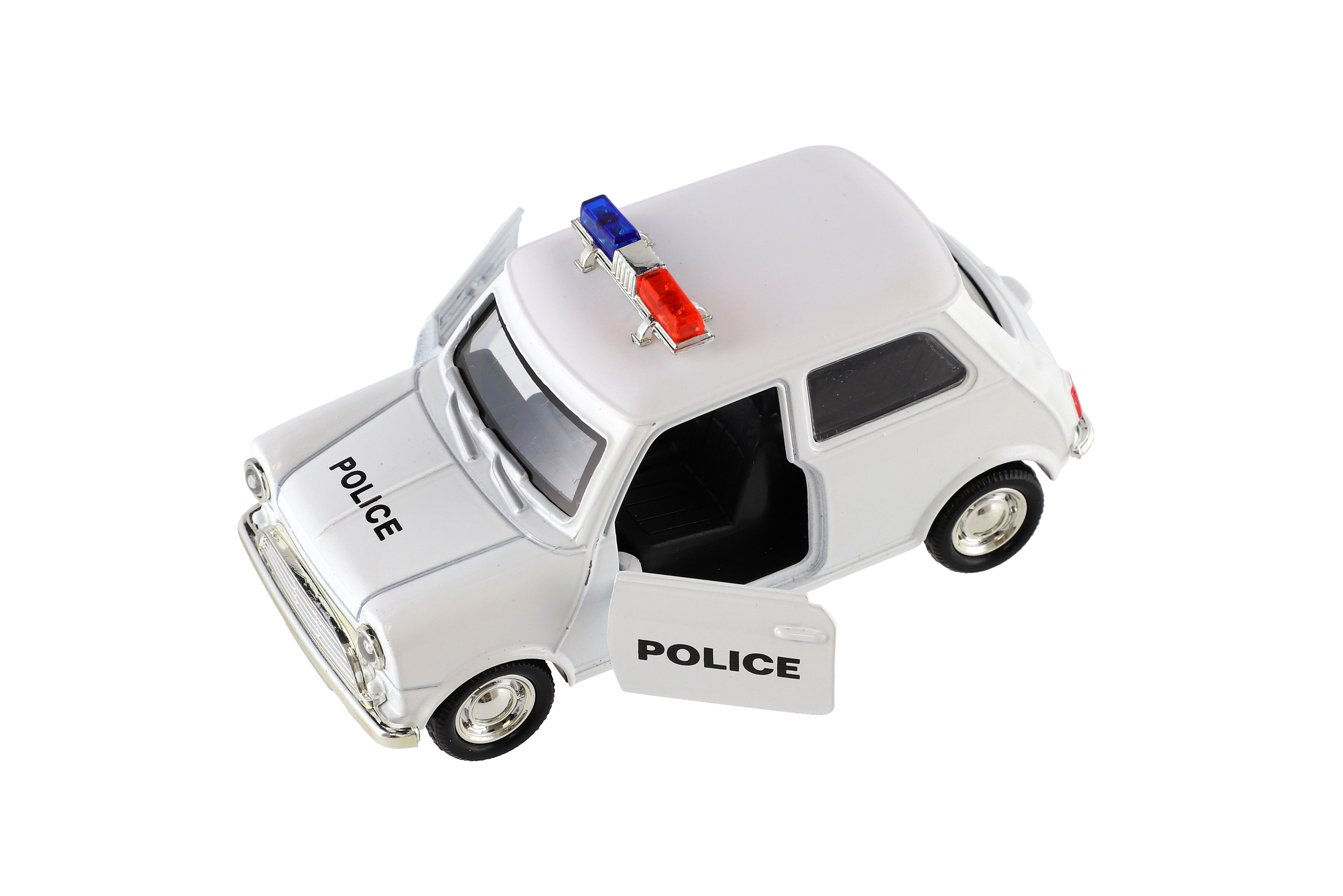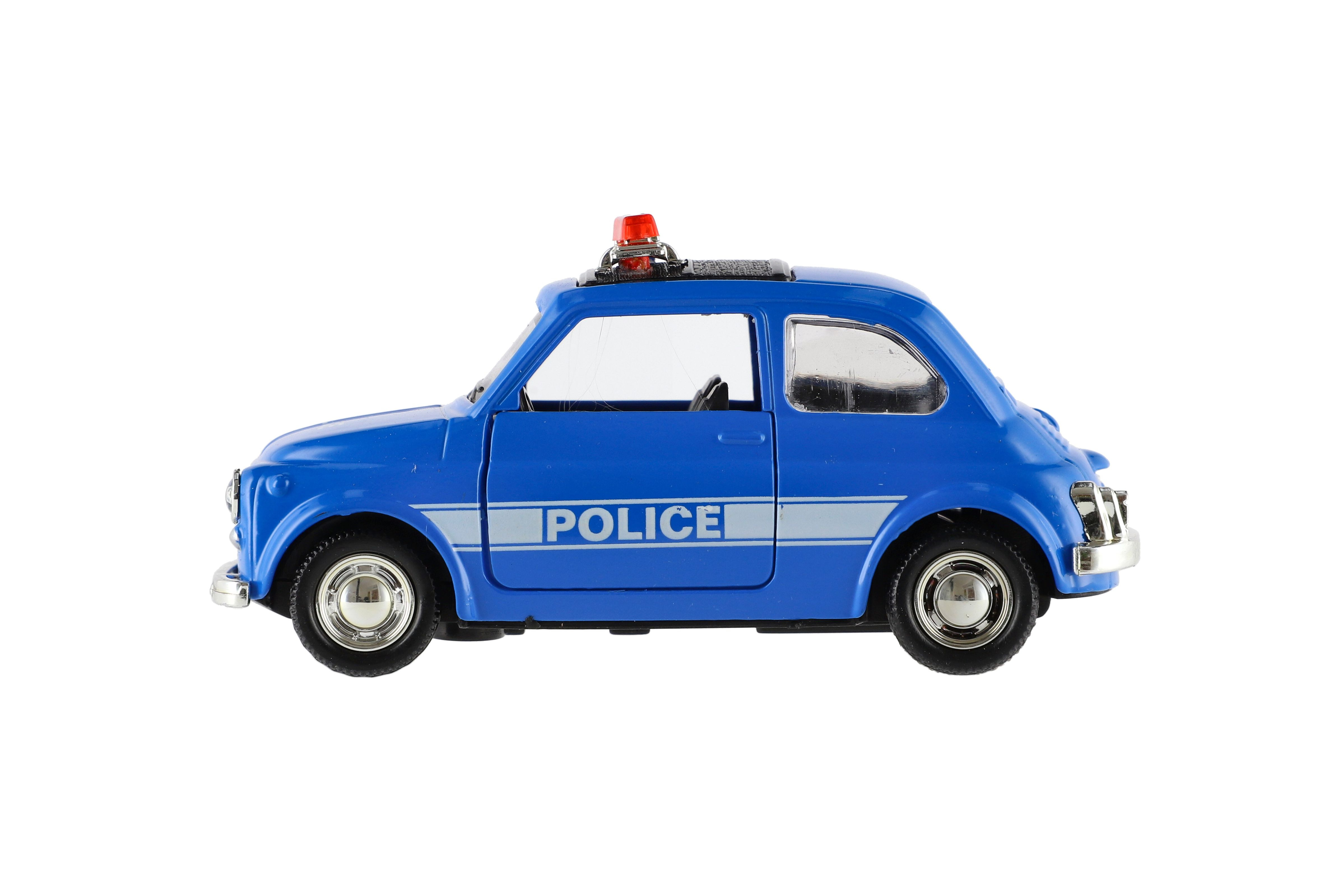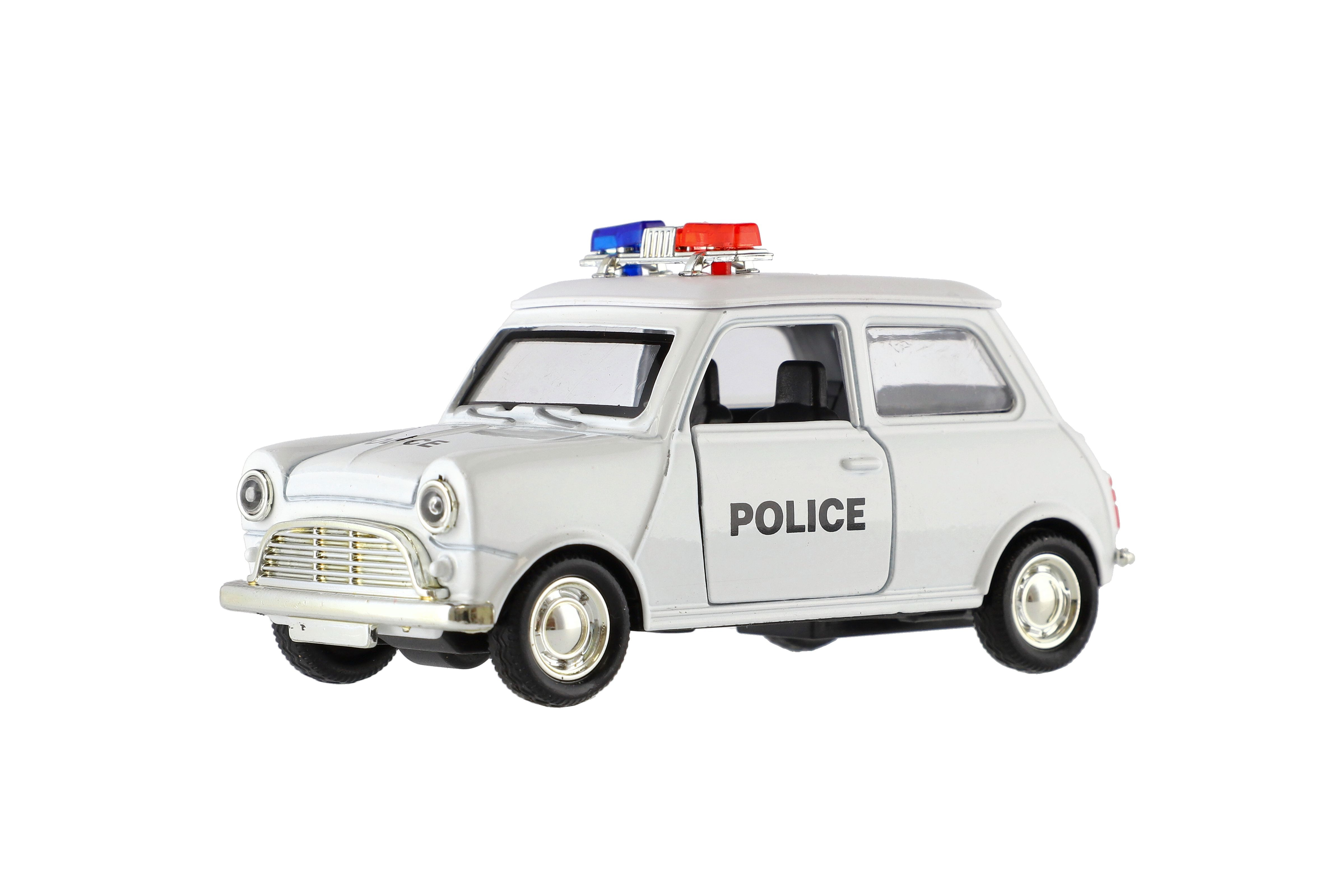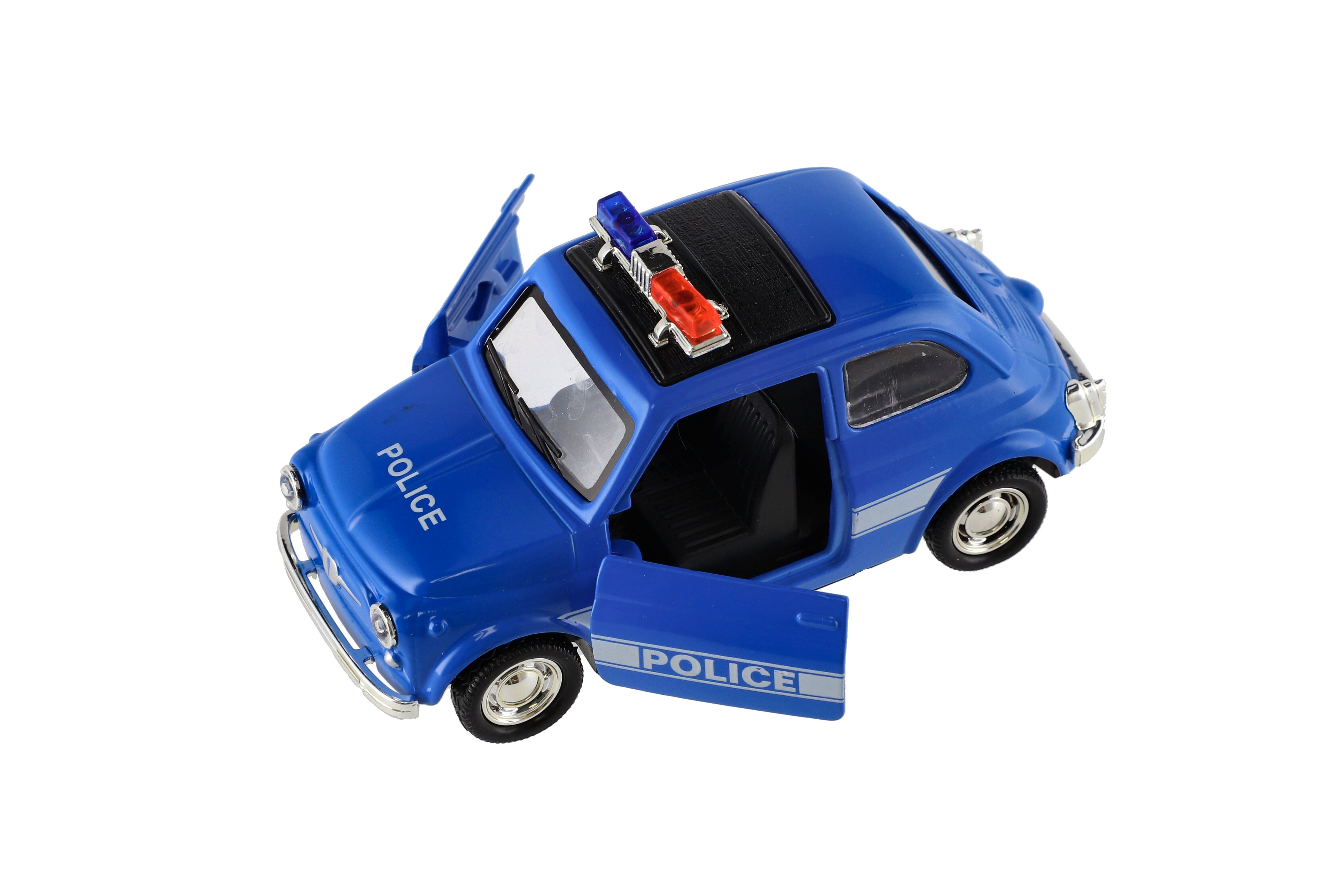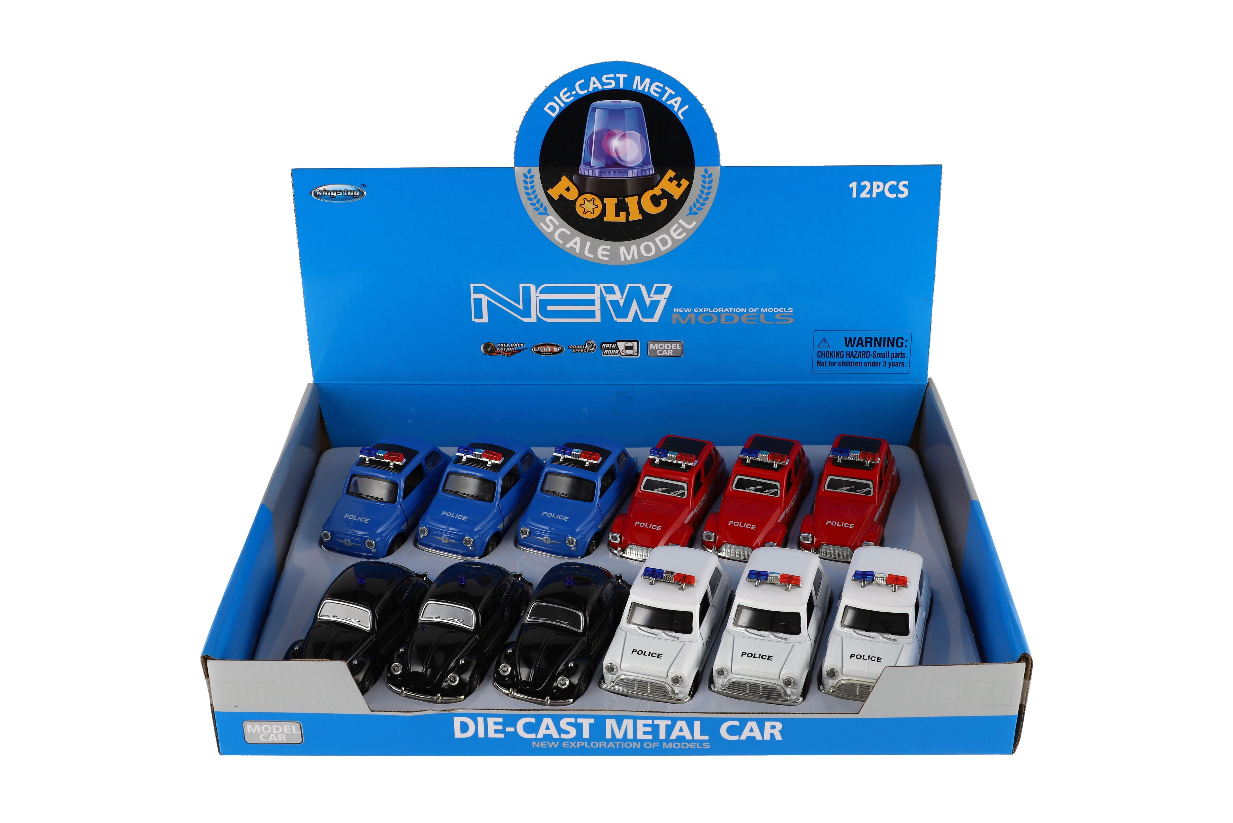 Teddies Auto policie retro 11cm kov/plast na zpětné natažení na baterie se světlem 4 druhy