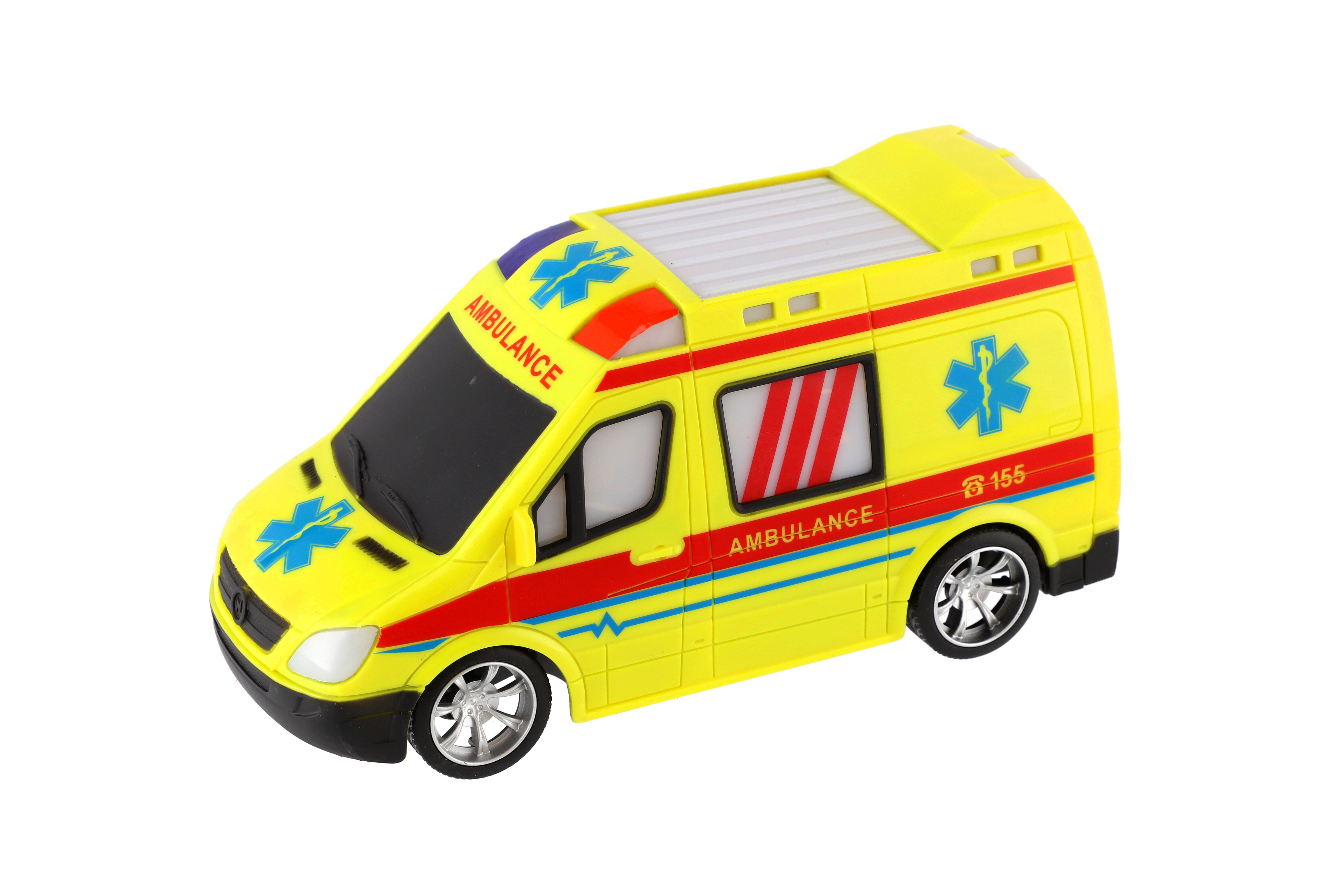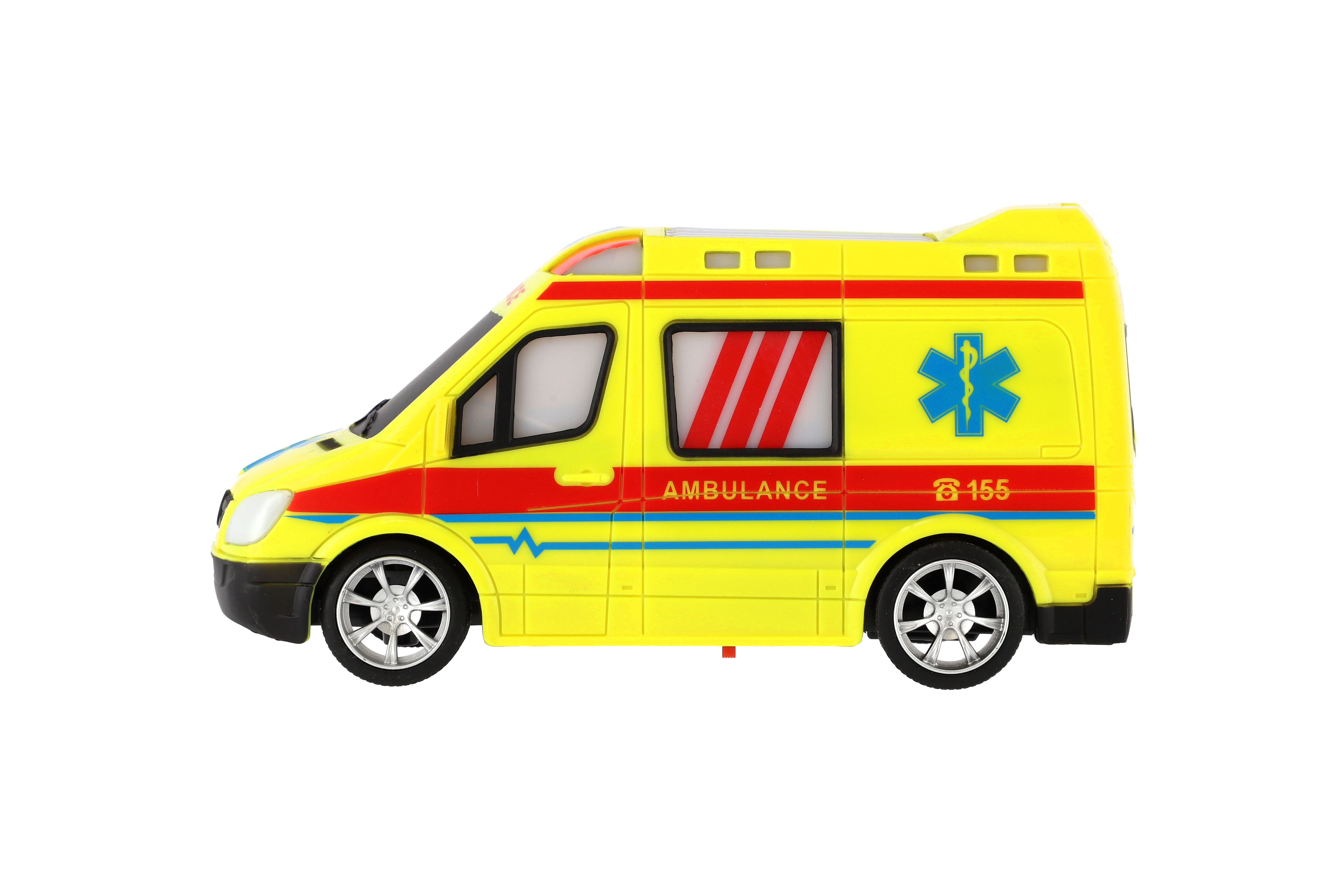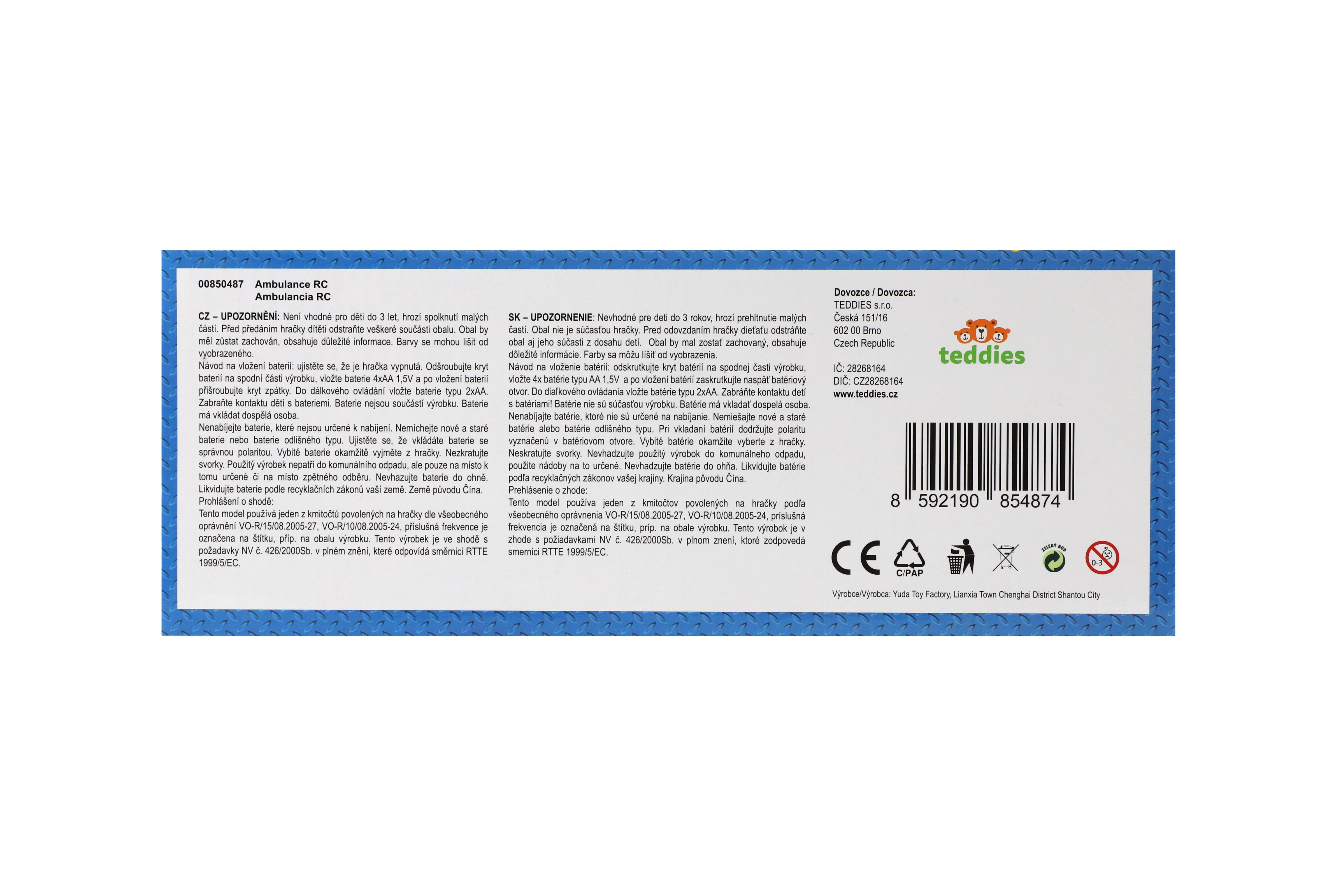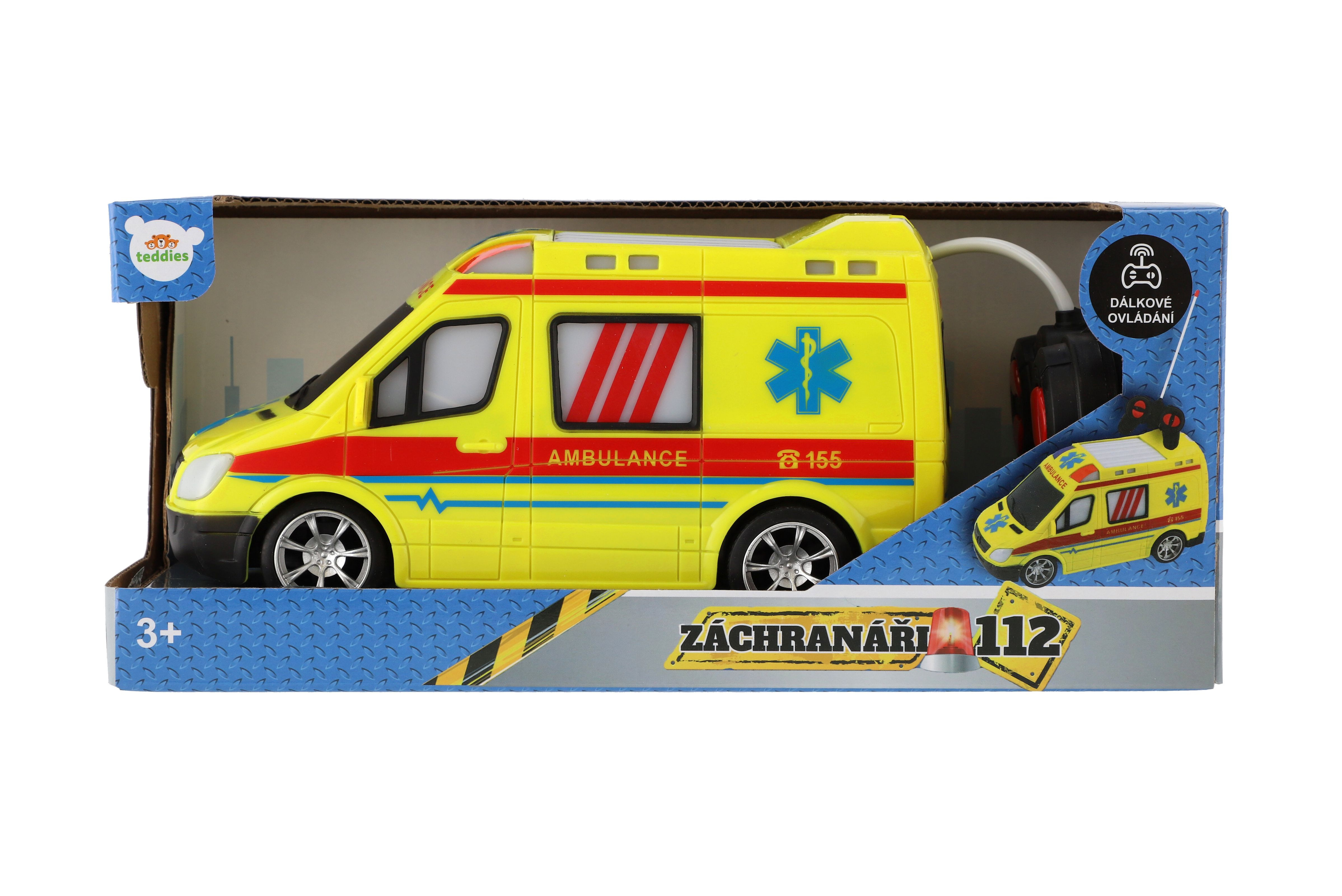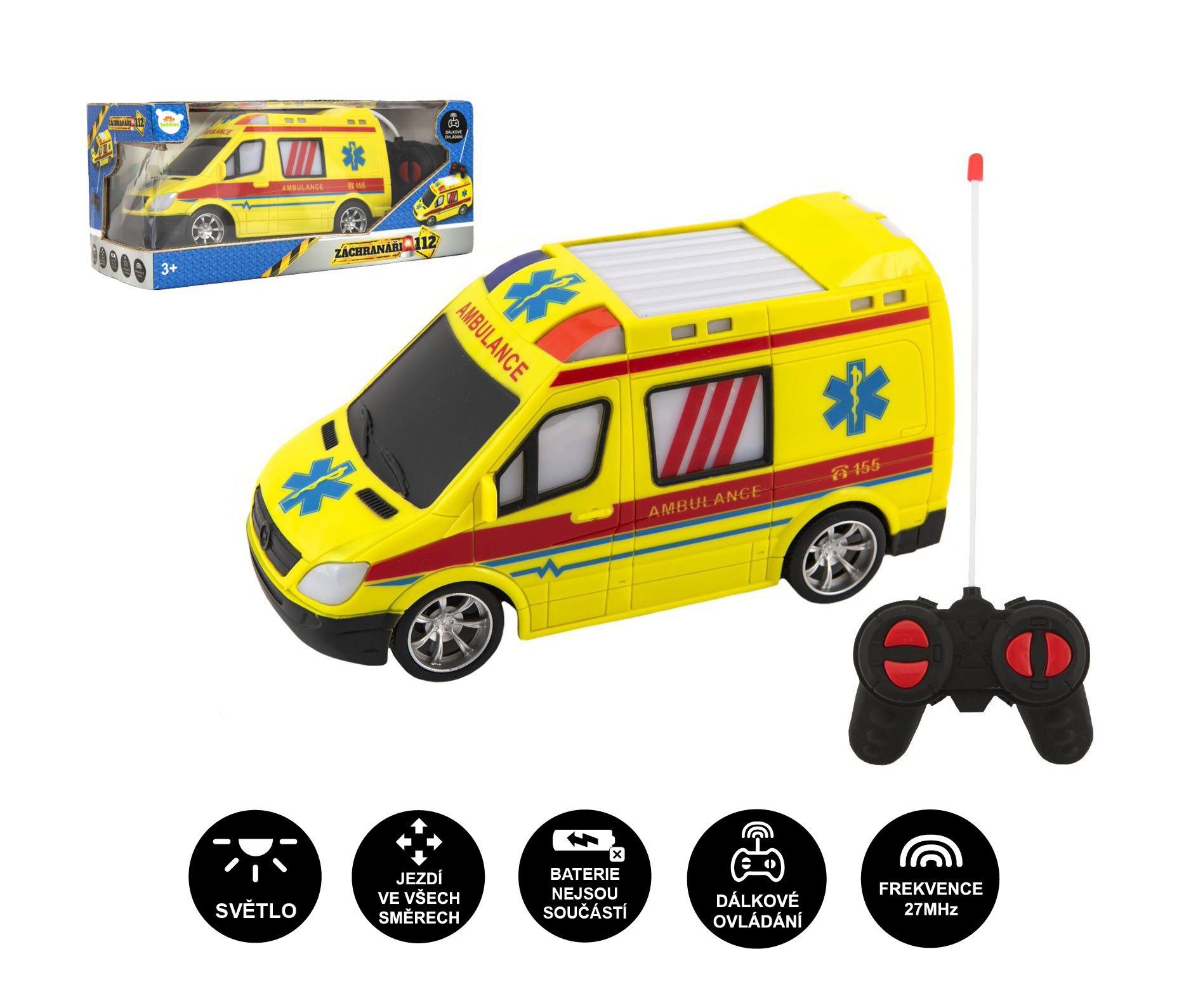 Popis Auto RC ambulance plast 20cm na dálkové ovládání 27MHz na baterie se světlem v krabici 28x13x11cm