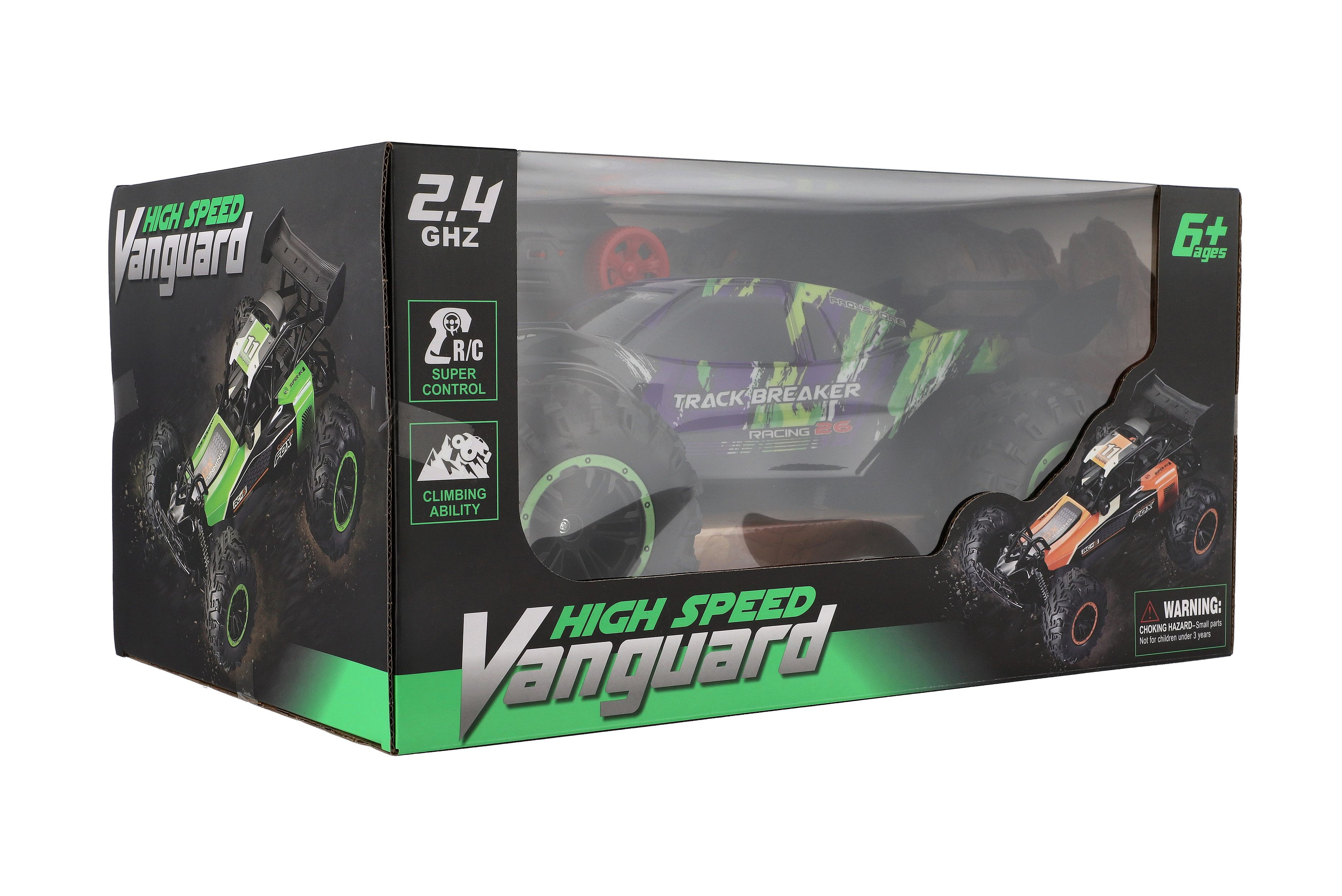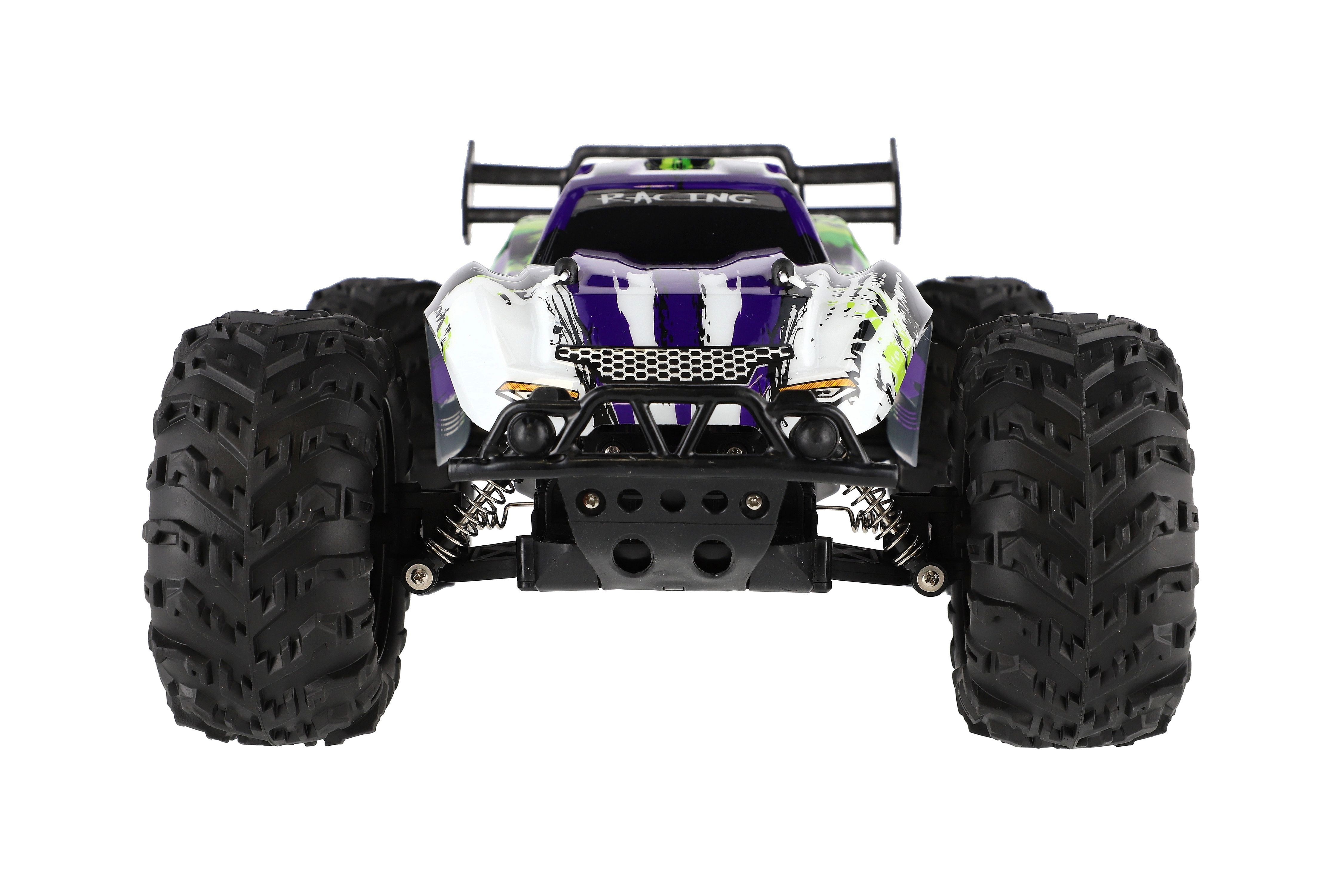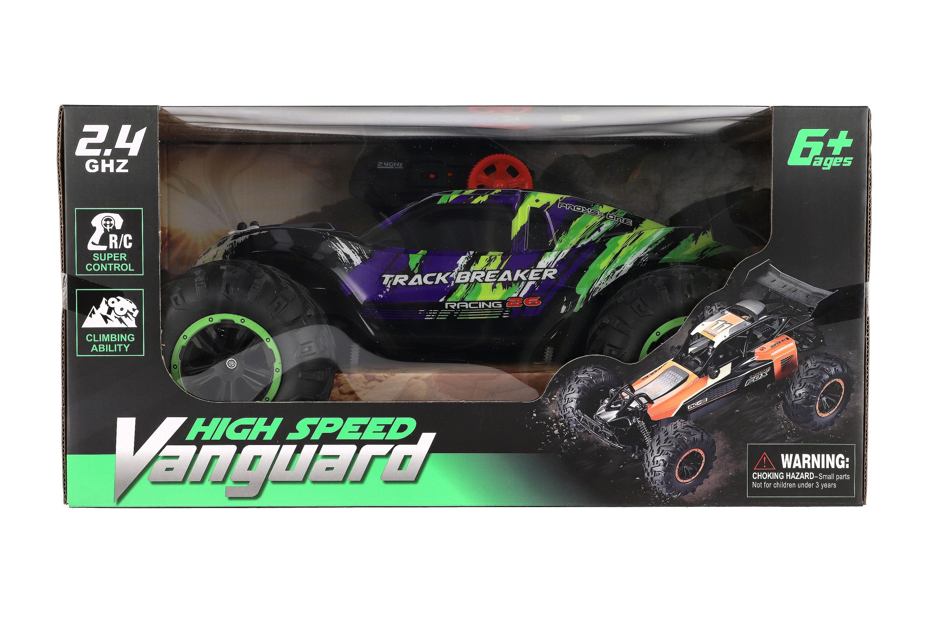 Auto RC Buggy rychlostní 2,4GHz plast 40cm dobíjecí pack+baterie fialové v krabici 42x21x28cm