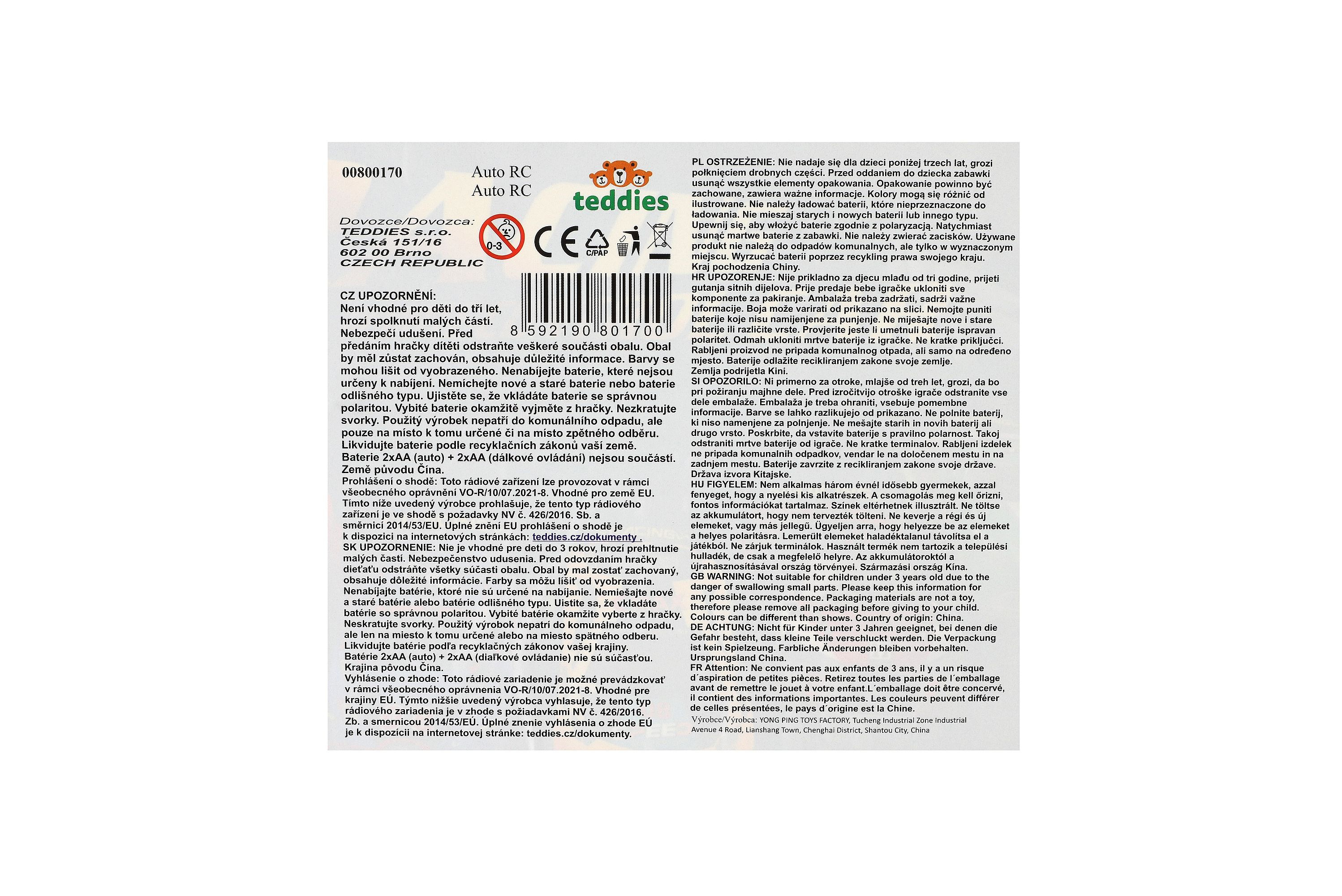 Závodní autíčko na dálkové ovládání musí doma mít každý malý závodník. Tento kvalitní model auta na dálkové ovládání jezdí všemi směry. Zajisté nadchne všechny automobilové fanoušky. Stačí šlápnout na plyn a dojet si pro vítězství! Baterie 4x AA nejsou součástí balení. Rozměry balení 24 x 12 x 14 cm. Vhodné pro děti od 3 let.