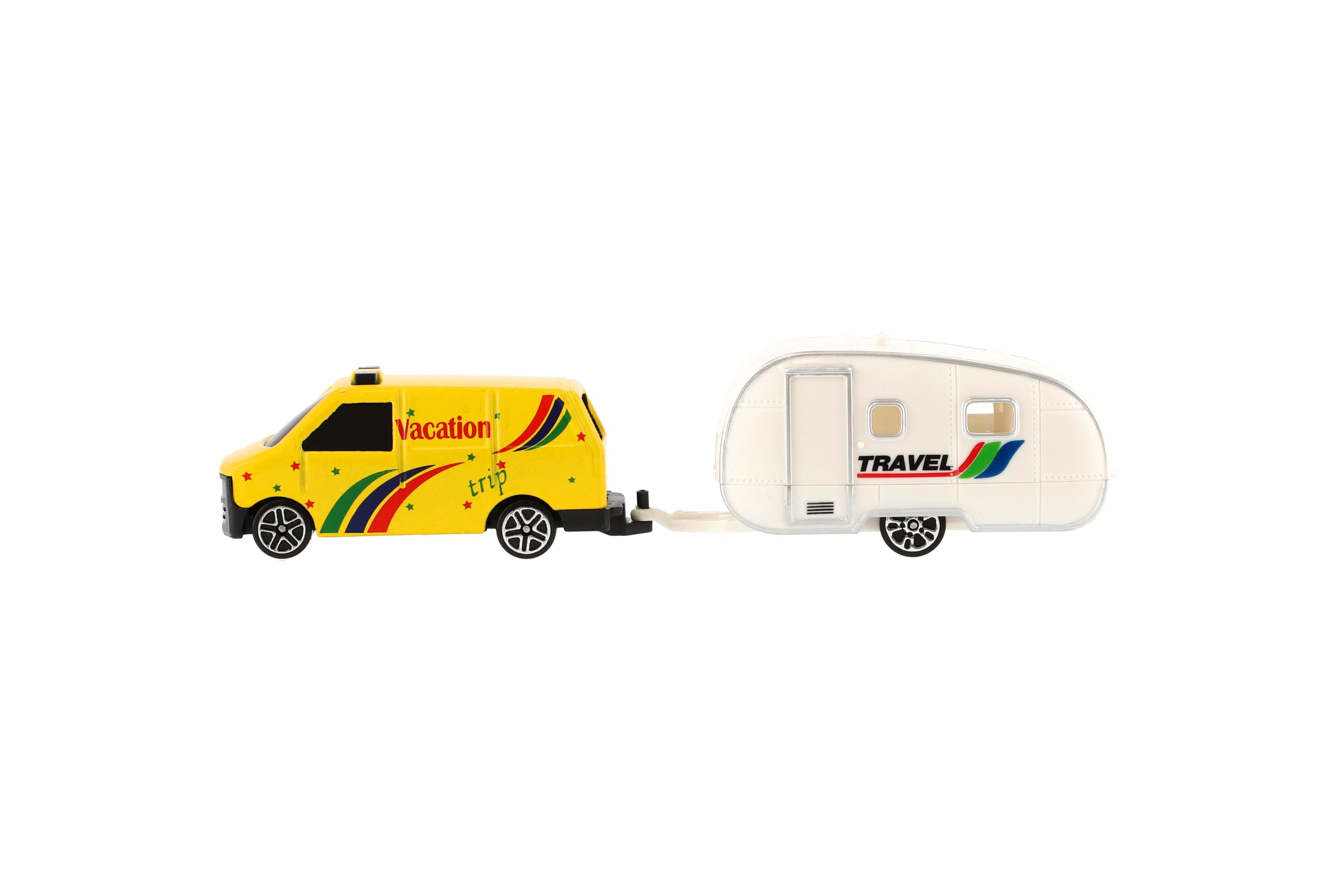 Milujete karavany? V tom případě tento model Vám nesmí chybět! Auto s mini karavanem, je ideální hračka i na cesty, protože ti nezabere moc místa! Délka auta i s karavanem je 14 cm. Rozměr balení: 19 x 7 x 4,5 cm Vhodné pro děti od 3 let