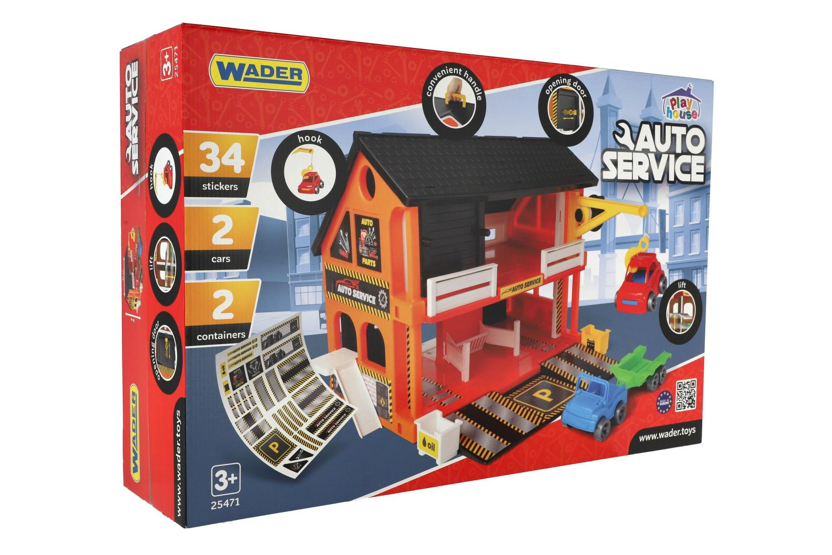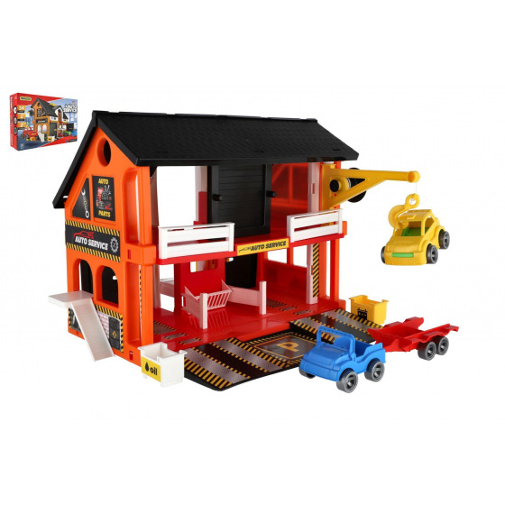 Auto servis 2 patra + 3 auta plast v krabici 59x39x15cm Wader