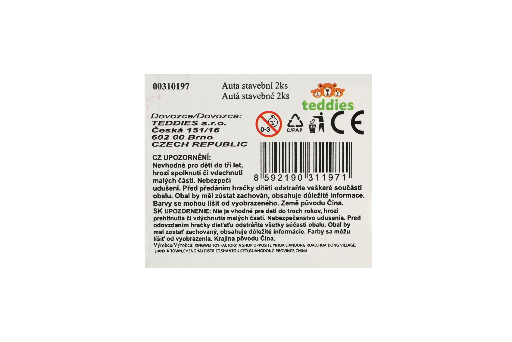 Popis Auto stavební 2ks plast 18cm na volný chod v krabici 39x14x11,5cm