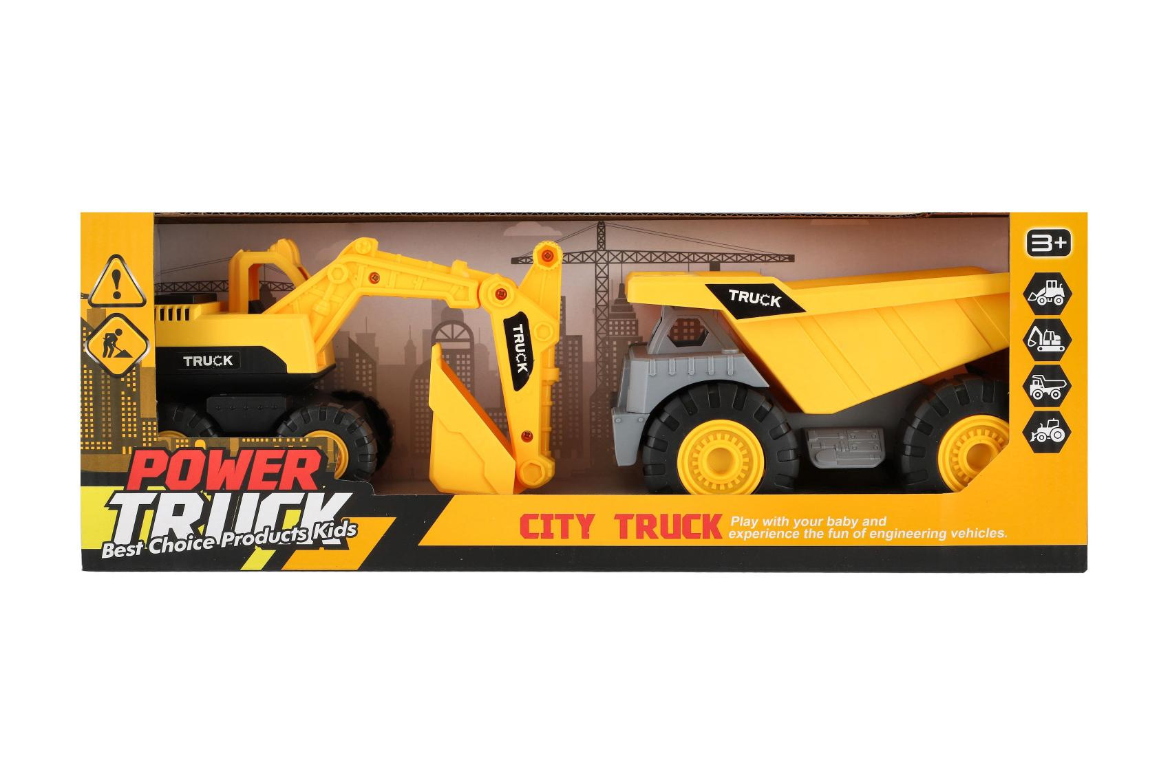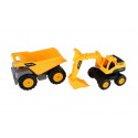 Tato sada dvou stavebních vozidel je skvělým doplňkem do každé dětské sbírky pracovních strojů. Autíčka jsou vyrobena z odolného plastu a mají volný chod, takže se snadno pohybují po jakémkoli povrchu – stačí je postrčit a jedou. Rozměry balení 39 x 14 x 12 cm Vhodné pro děti od 3 let