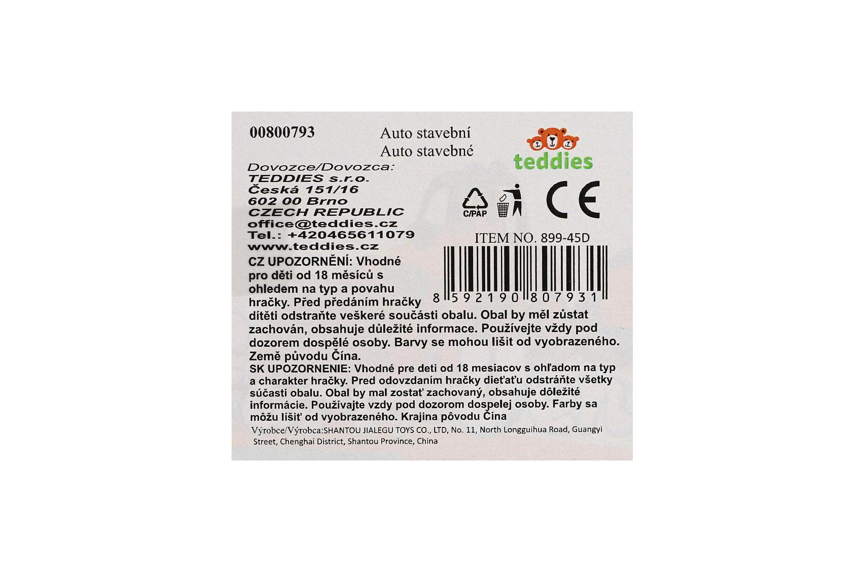 Popis Teddies Auto stavební plast 12-14cm na setrvačník mix druhů 8ks v boxu 18m+