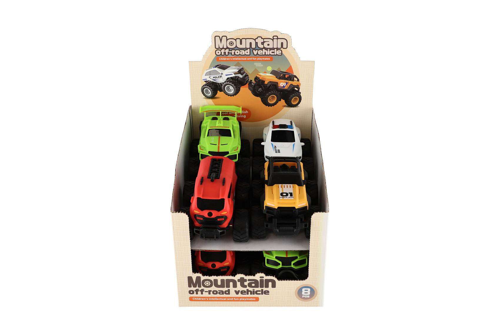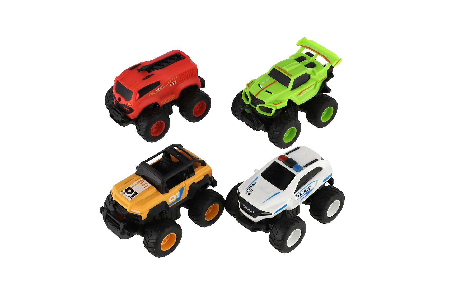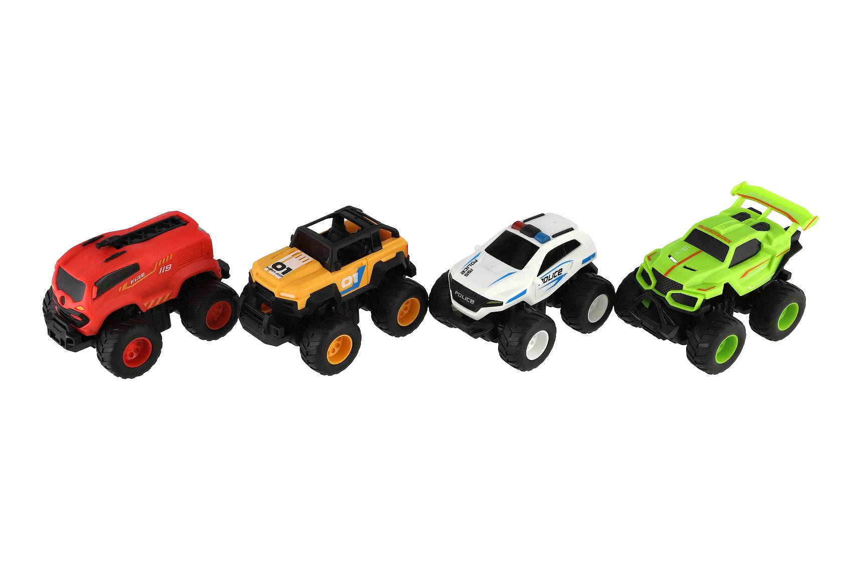 Parádní terénní auta s velkými koly zvládnou každou překážku. Díky setrvačníku stačí auto natáhnout a vyrazit do akce. Robustní design a výrazné barvy zaujmou každého malého fanouška off-road jízdy.