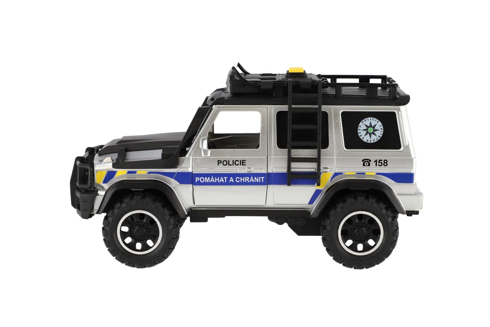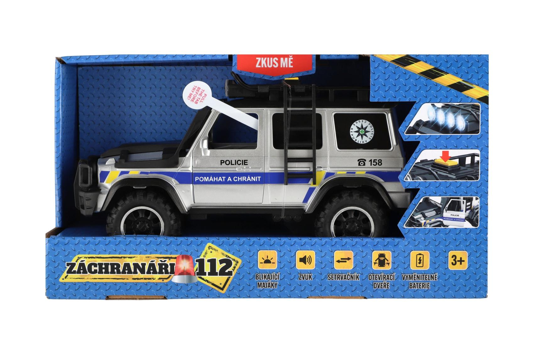 Popis Auto záchranáři policie terénní plast 23x14cm na setrvačník na baterie se světlem se zvukem v krabic