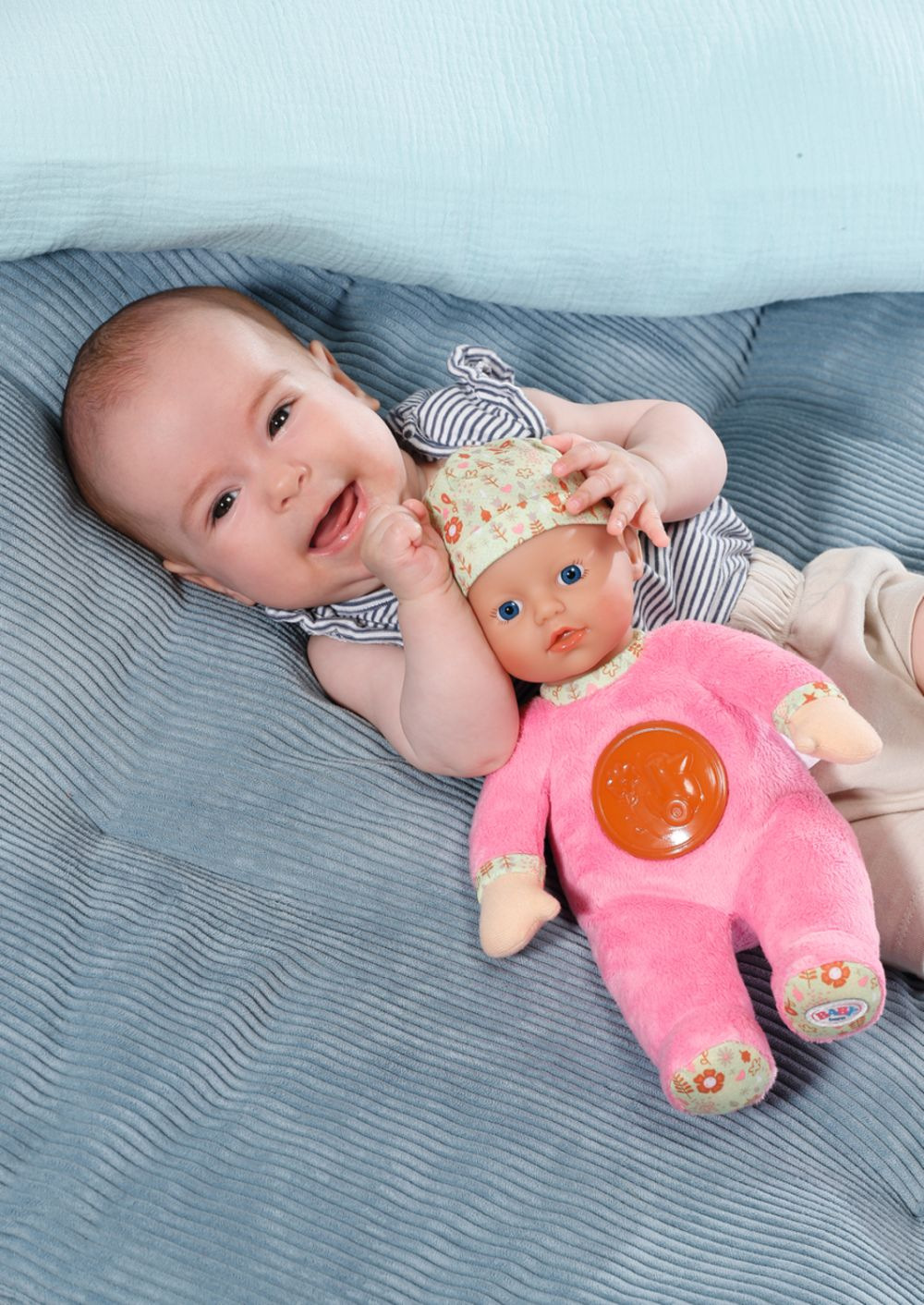 • Originální panenka BABY born. • Děti si s panenkou mohou hrát a tulit se k ní, bude jim pomáhat v klidu usnout, zároveň je to skvělá panenka pro představení hry na maminku a děťátko. • Tělíčko panenky a končetiny jsou ušity z látky s měkkou výplní uvnitř. • Vhodná i pro ty nejmenší miminka již od narození. • Funguje na baterie (baterie jsou součástí balení). • Panenku lze vyprat v ruce, stačí vyjmout zvukový modul.