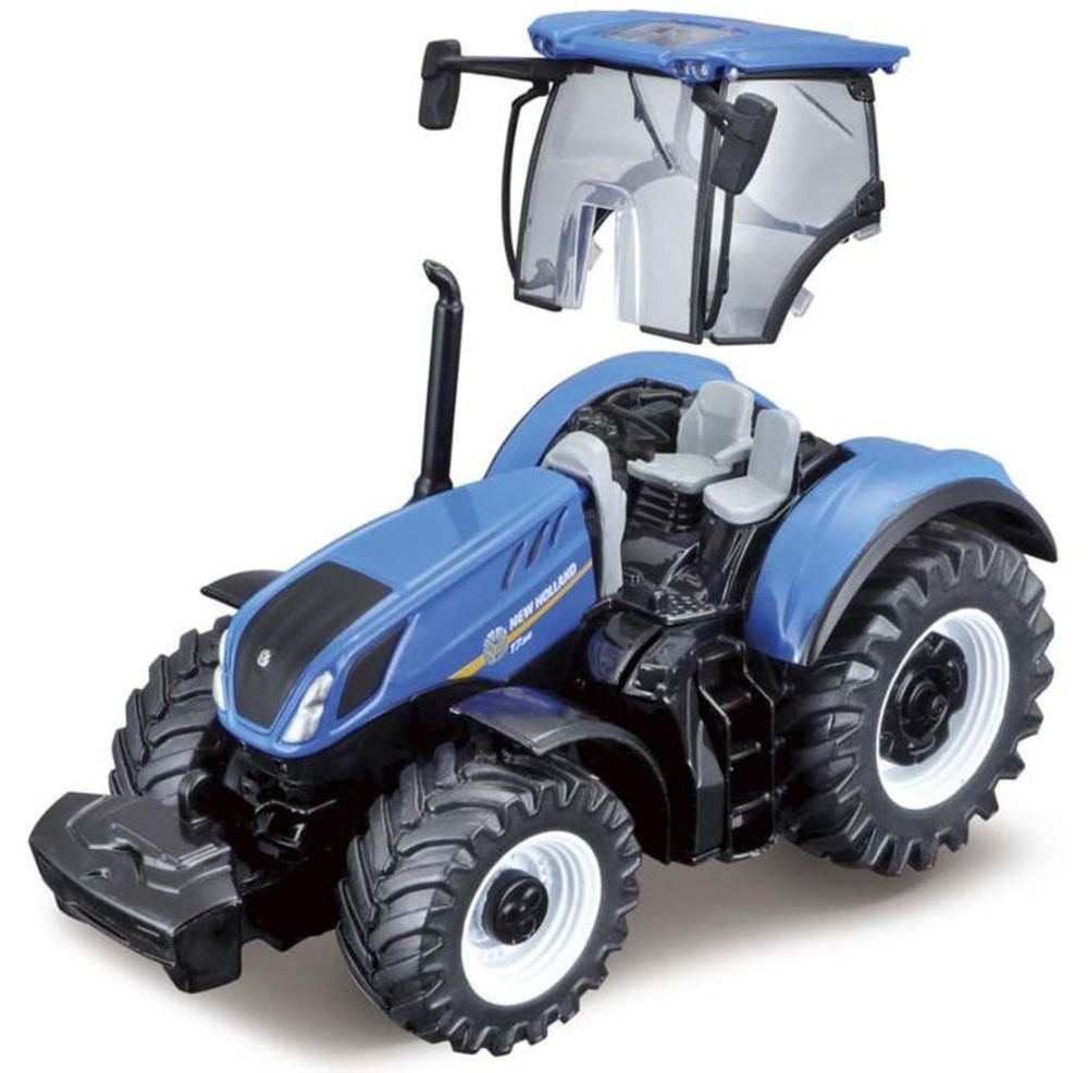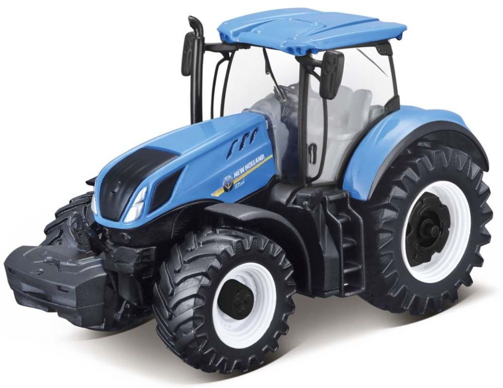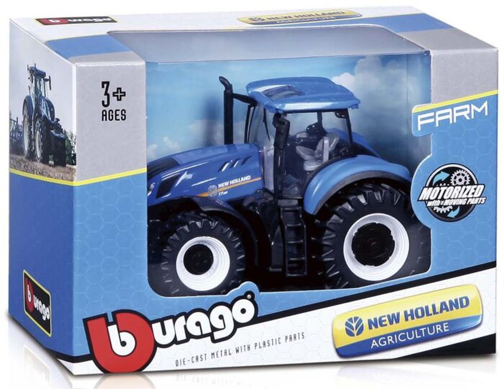 Mini Work Machines – Super farmářský set New Holland. Super set obsahuje: kovový model traktoru New Holland s plastovými detaily, přídavný traktor s buldozerem, dodávku, transportér, přívěs, strom, zeleninu a další příslušenství k sestavení vlastní farmy. Doplňky jsou vyrobeny z plastu. Součástí je také papírová hrací podložka o rozměru 29,7 x 21 cm. Model traktoru o velikosti 3'' (cca 7,5 cm) je vyroben z tlakově litého kovu. Rozměry balení: 23,2 x 20,49 x 4,45 cm. Věk: 3+