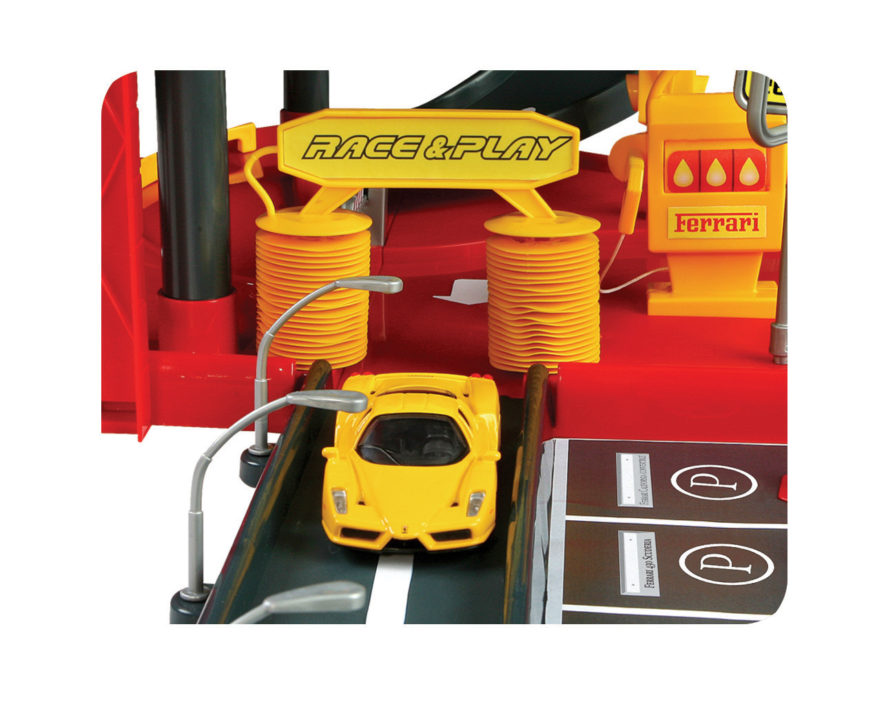 Bburago - FERRARI Race + Play, Garáž a parkoviště se dvěma autíčky, 1:43