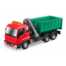 Bburago - Municipal Vehicle, Nákladní vozidlo hákový nosič kontejnerů s jeřábem.
