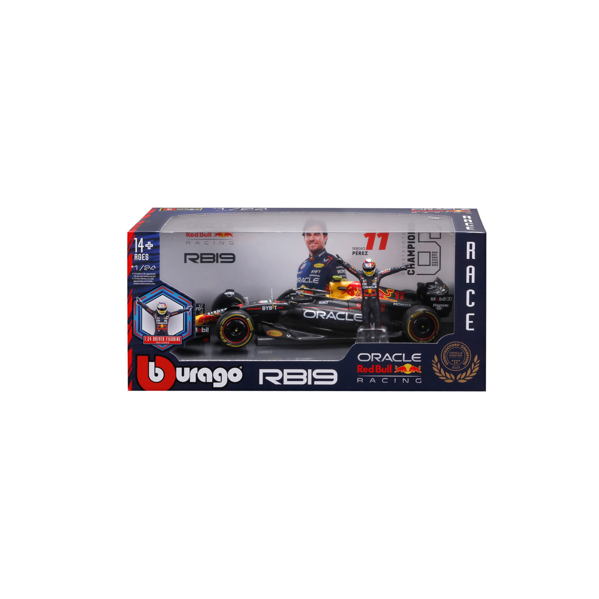 Bburago - RACE Formule F1 s figurkou jezdce, Oracle Red Bull Racing RB19 (2023), 11# Peréz, 1:24