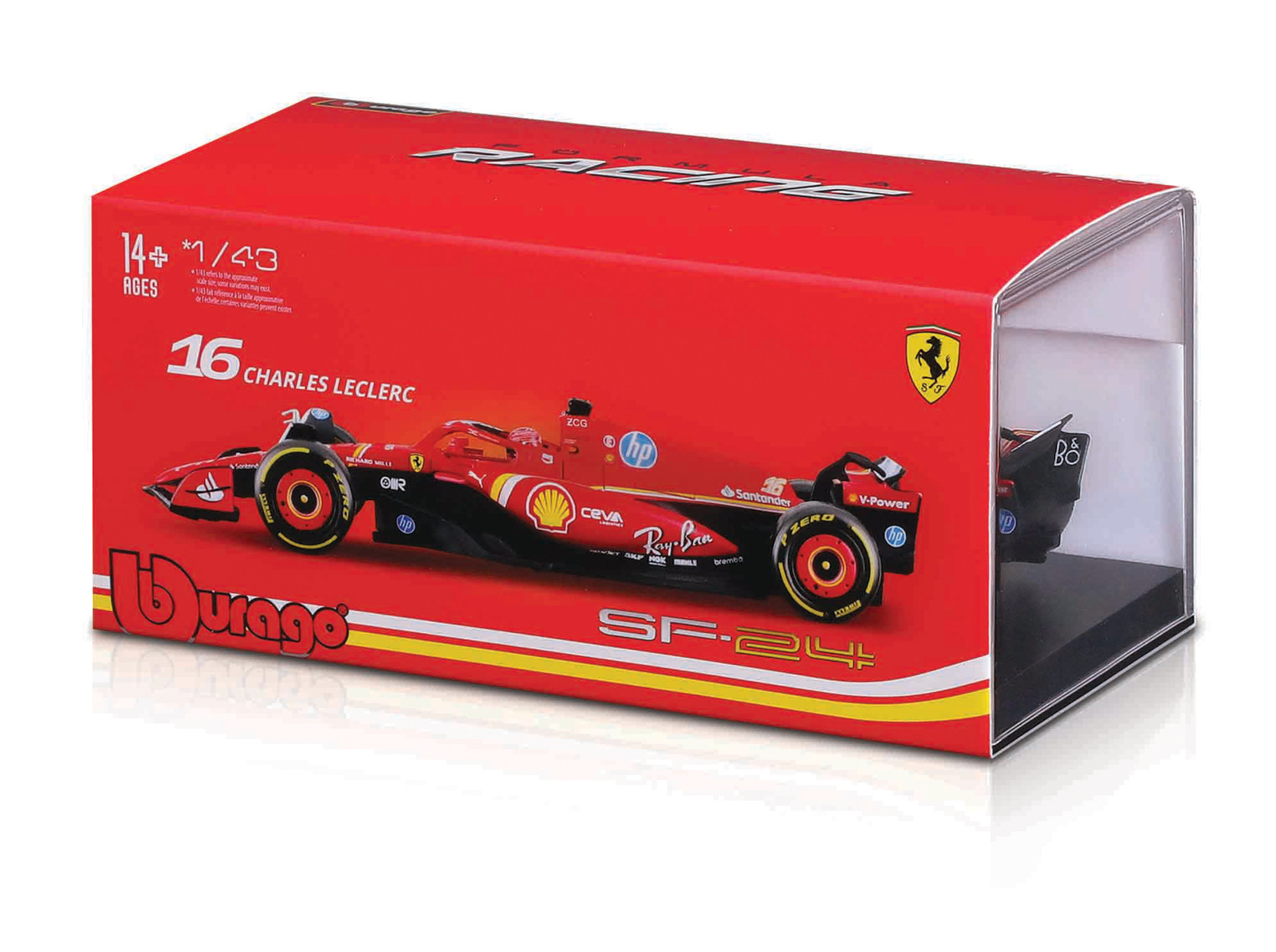 Bburago - RACE Formule F1 v dekorativním boxu, Ferrari SF-24 (2024), #16 Charles Leclerc, 1:43