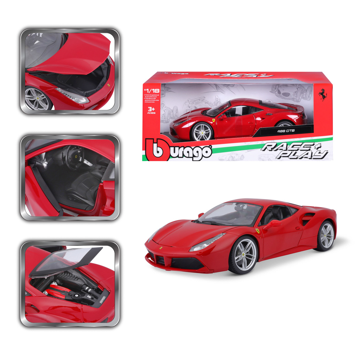 Bburago - RACE+PLAY, Ferrari 488 GTB, červená, 1:18