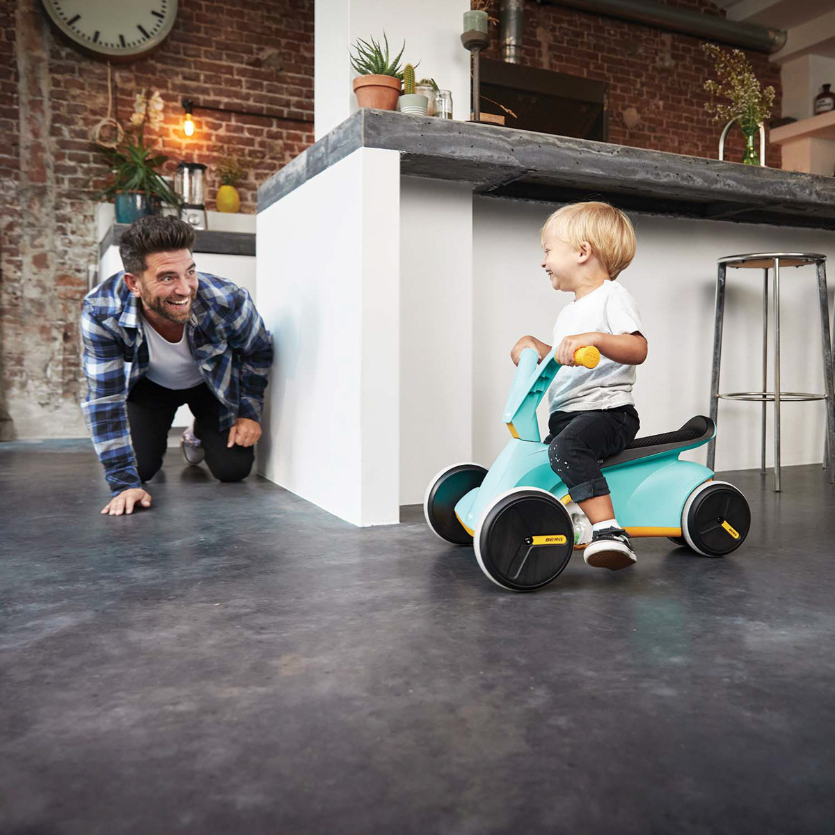 Skvělé bezpečné designové odrážedlo pro nejmenší. Odrážedlo GO je neodolatelné pro každé batole. Veselé barvy s lákavou hrou na boku. Čtyři tichá kolečka zajišťují stabilitu. Ergonomický design umožňuje volný pohyb nohou. S GO uděláte obrovské pokroky vpřed s koordinací a motorickými dovednostmi. Rozměry balení: 39x27x60cm. Věk: 12m+