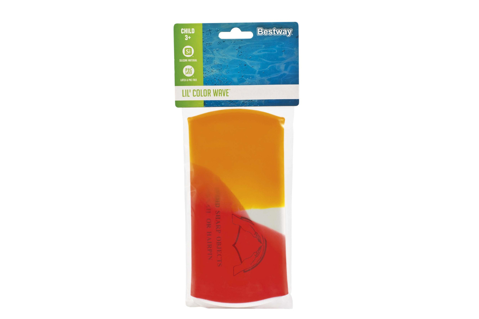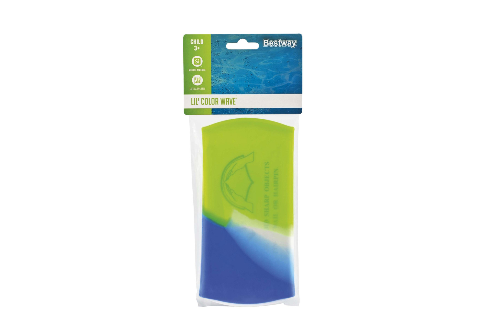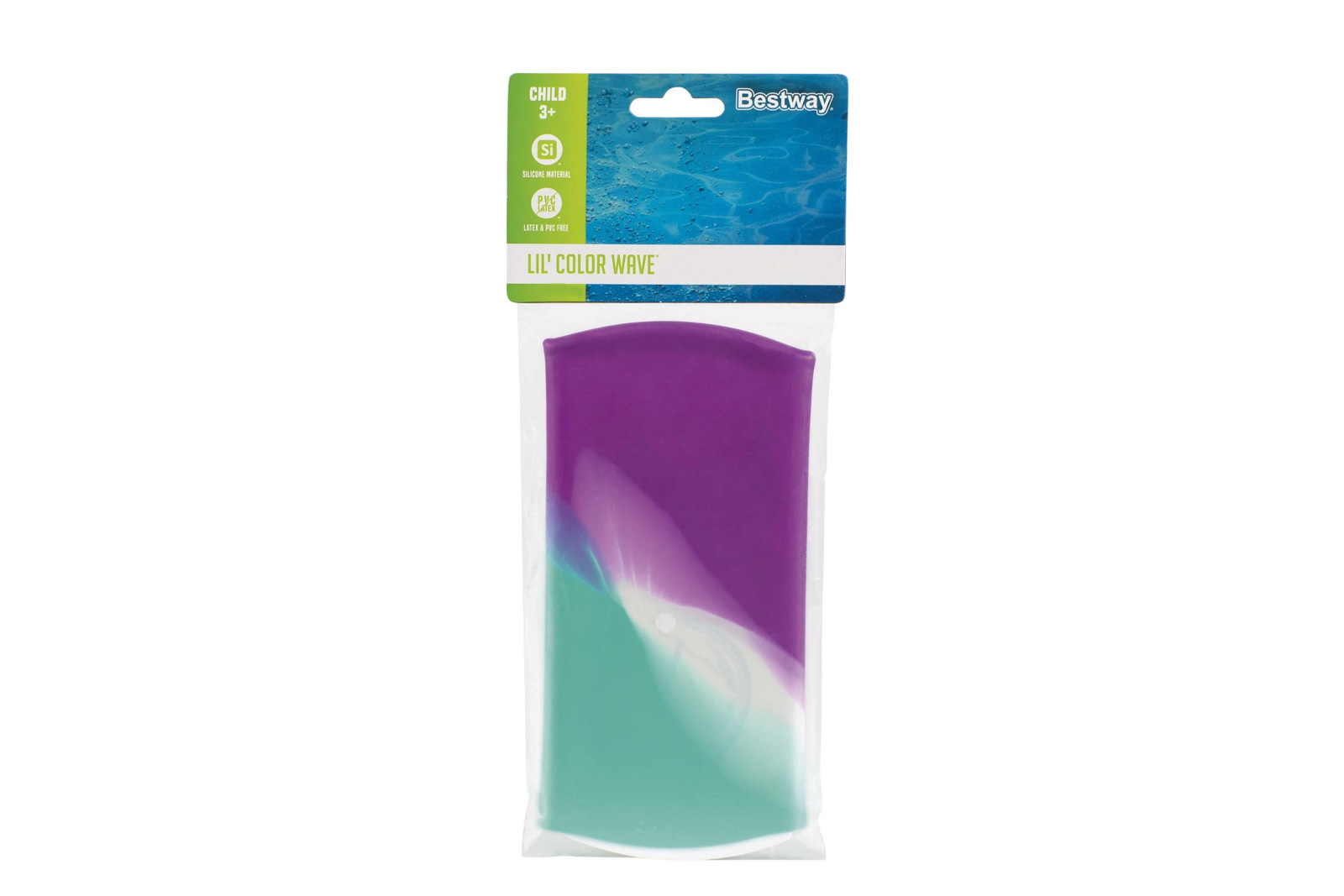 Dětská plavecká čepice Bestway® Lil'Color Wave. Tato silikonová plavecká čepice je speciálně navržena pro malé plavce. Je vyrobena z pružného materiálu. Čepice je šetrná k vlasům. Barevný a hravý vzhled jej činí atraktivním pro děti, navíc jsou ve vodě snadno vidět. 3 barevné varianty v kolekci. Assort je náhodný mix modelů. Výběr nelze ovlivnit. Rozměry produktu: 20 x 18 x 0,2 cm. Rozměry balení: 27 x 11 x 0,5 cm. Věk: 3+